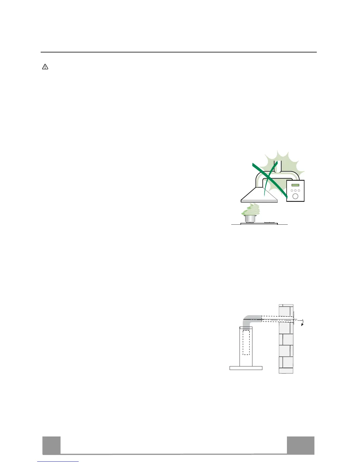 • Die Abzugshaube darf nicht an einen Schacht angeschlossen werden, in den