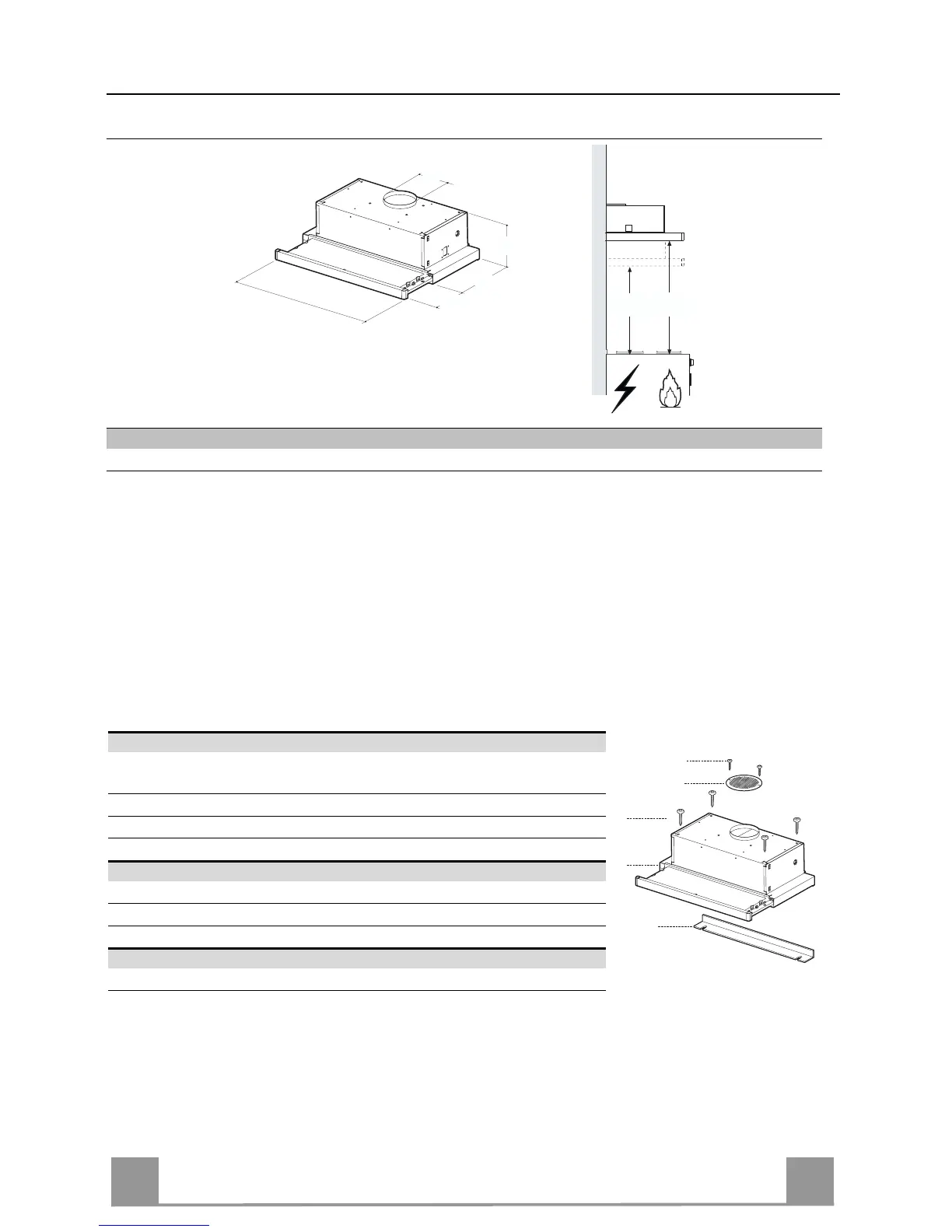 1 1 Corps Hotte équipé de:Commandes, Lumière, Groupe Ventilateur,