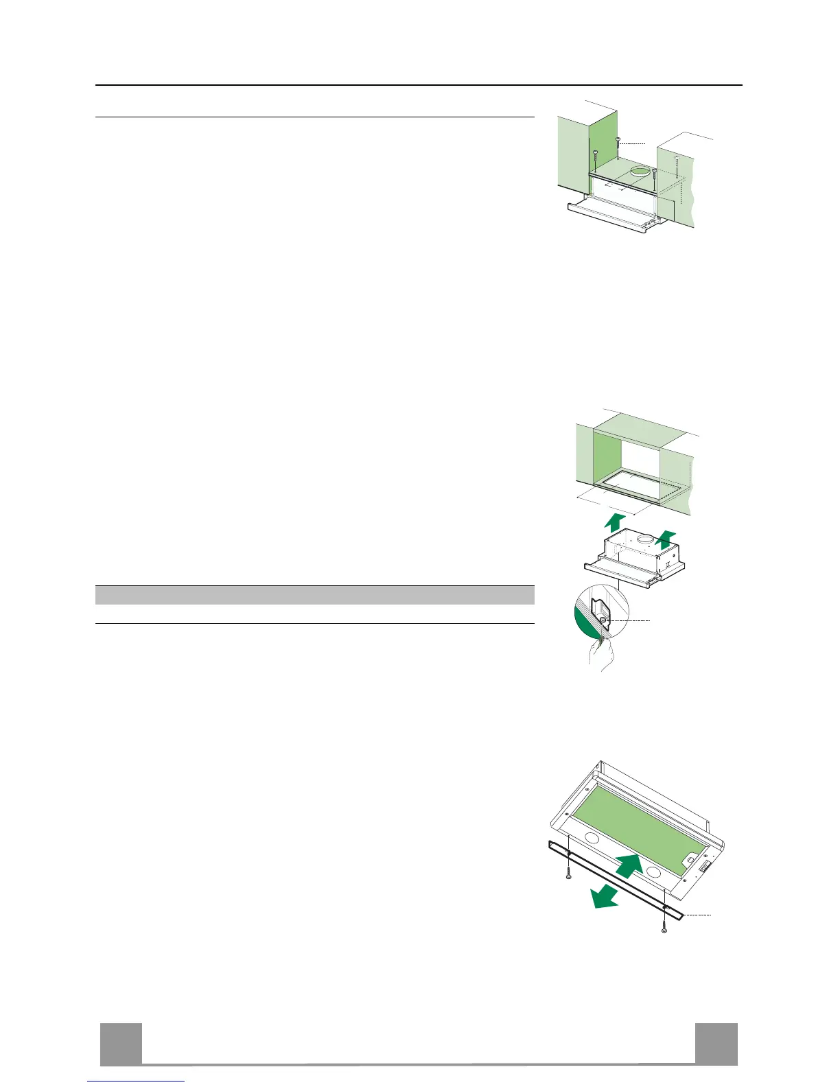 • The hood can be installed either directly on the bottom surface