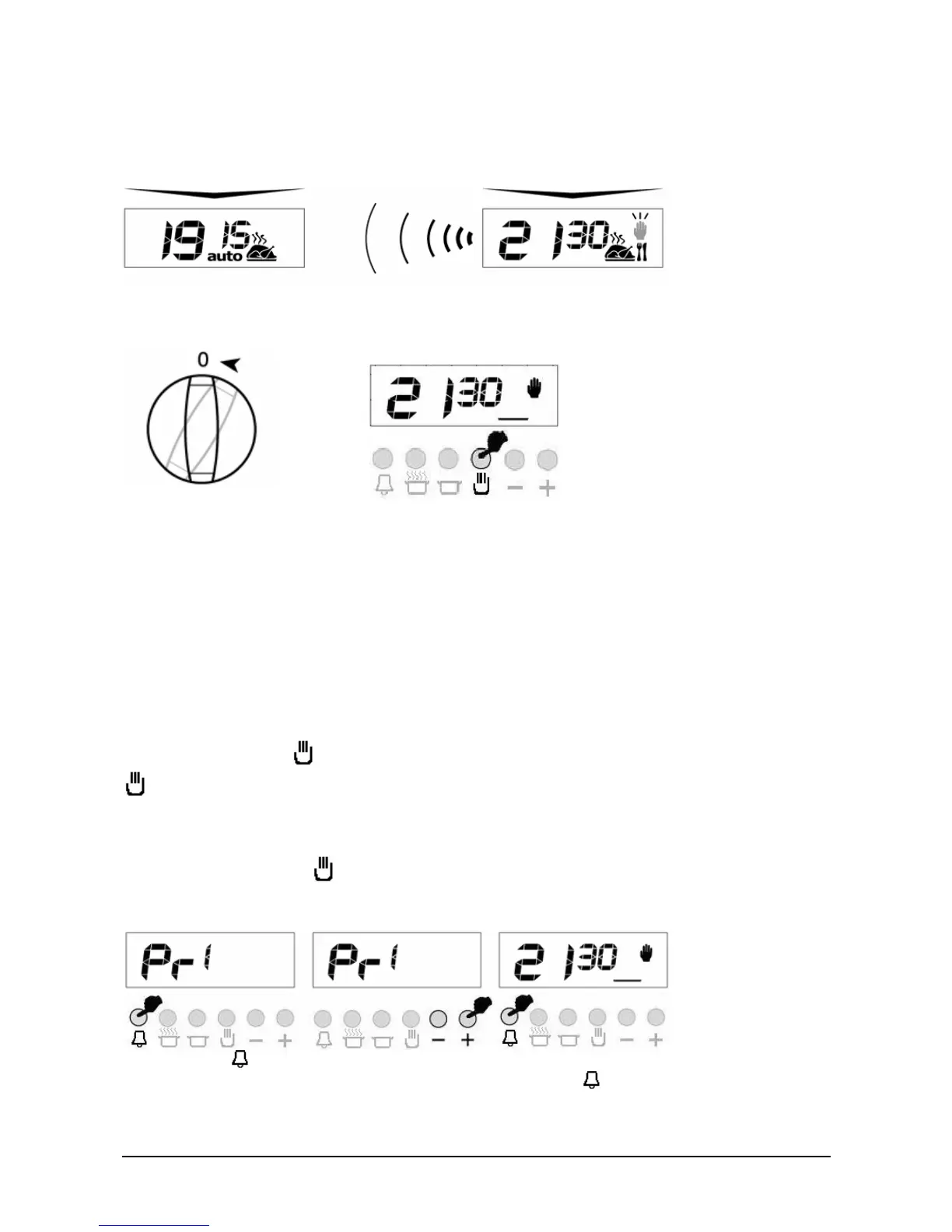 Mains power interrupts will switch your oven into OFF mode. In that case the hand icon