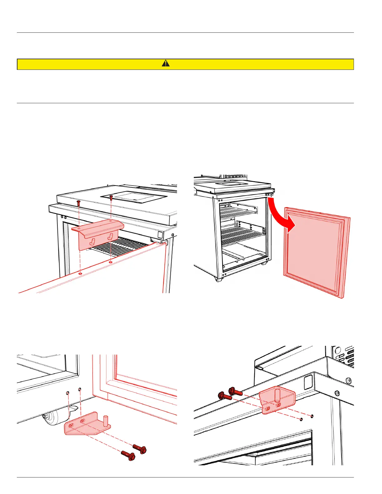 Use caution when removing door to avoid dropping heavy components onto feet.