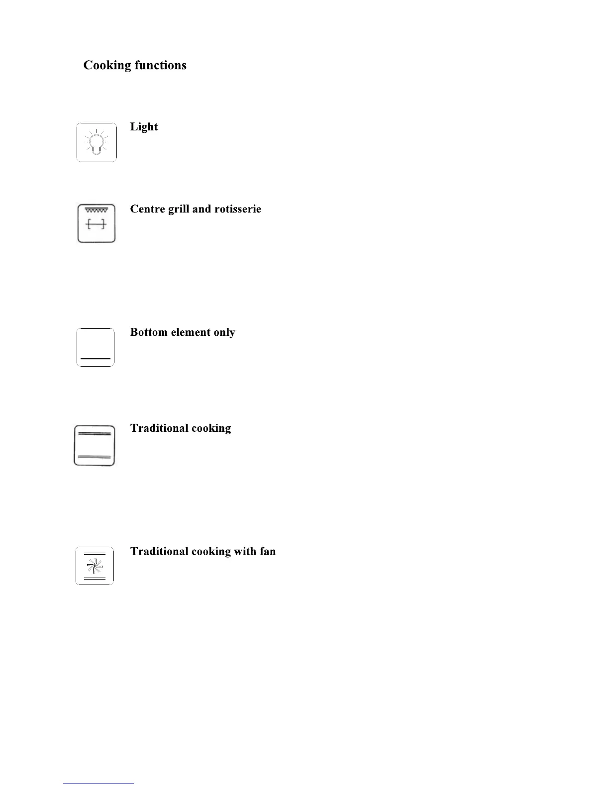 This function operates the centre grill element as well as the rotisserie motor.