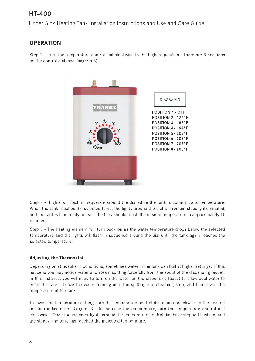 Franke HT-400 - Operation; Adjusting the Thermostat
