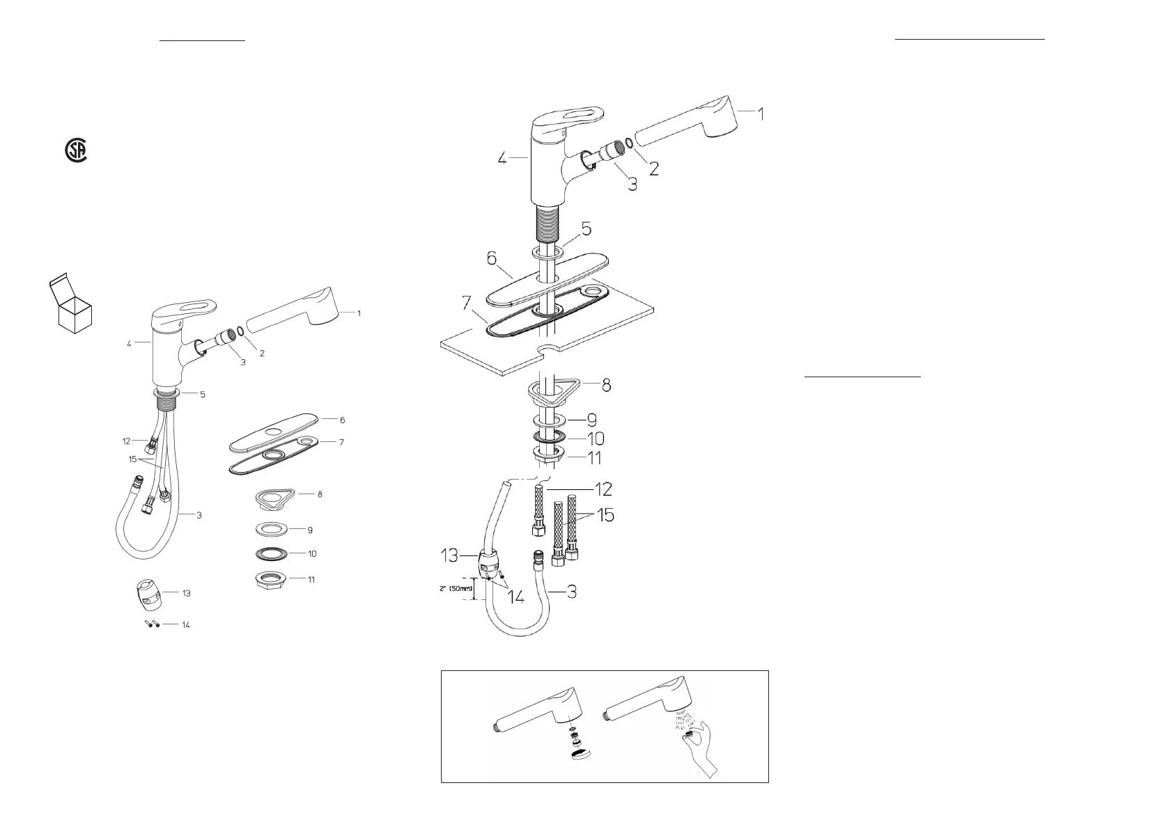 2. Connect the pull out spray (1) to the pull out hose assy (3) hand tight.