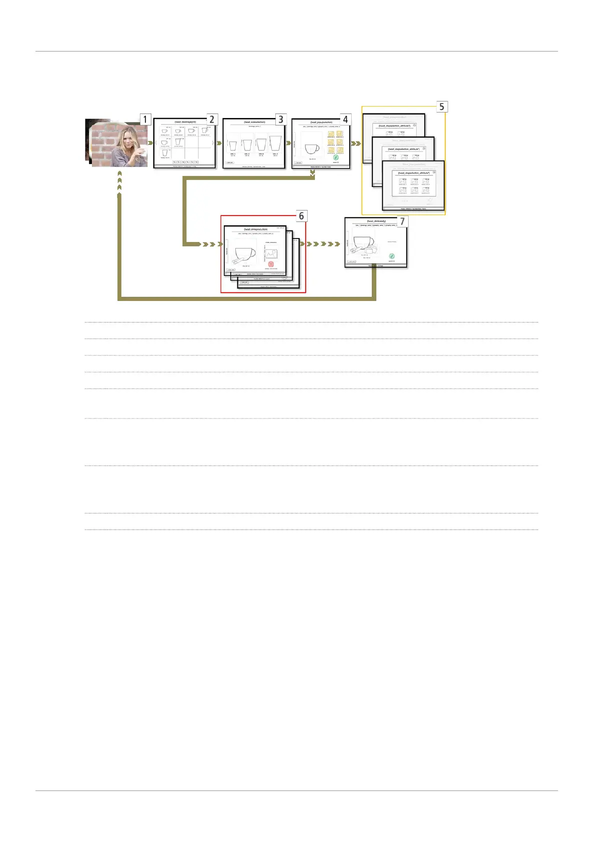 6 Start beverage preparation: Confirm beverage selection, select payment type