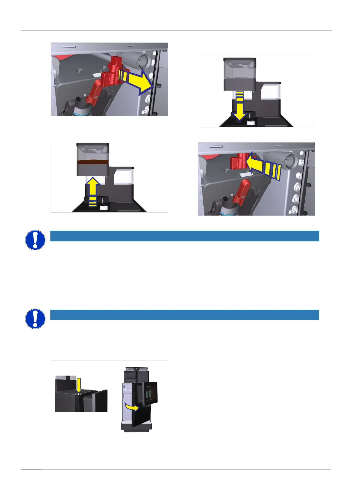If the bean hopper and powder hopper are not locked correctly, the function of the coffee machine and the