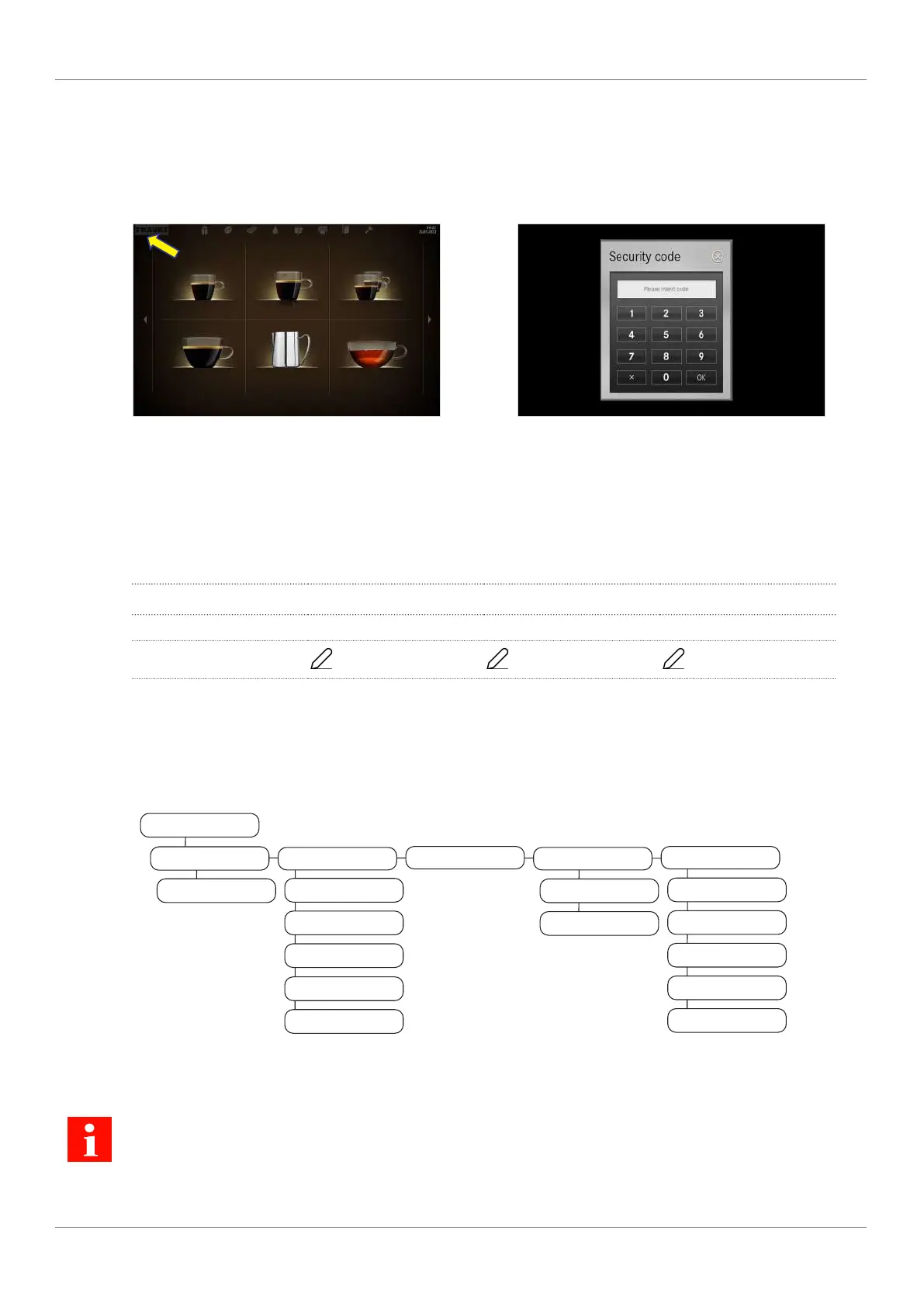 Depending on the configuration of your machine, individual menu items may or may not be displayed.