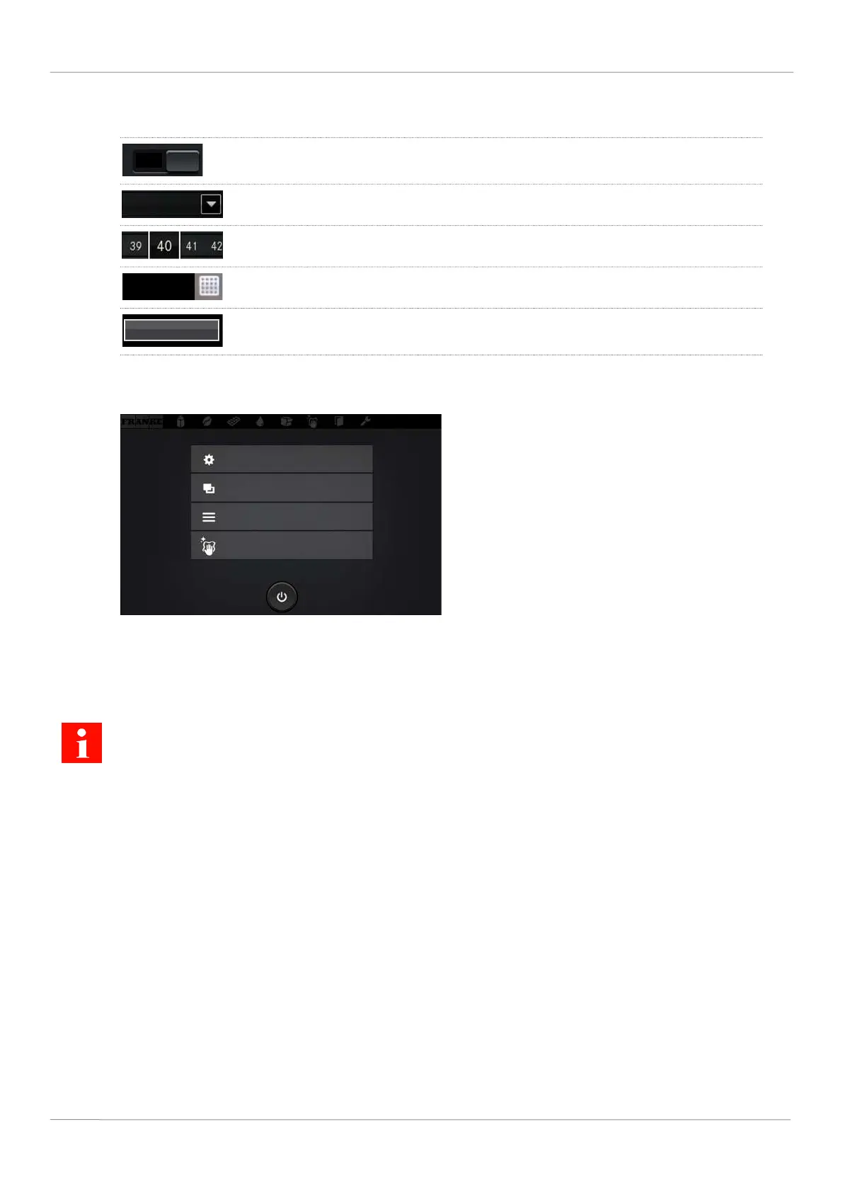 Press the button to carry out the corresponding settings, e.g. Start, Test.