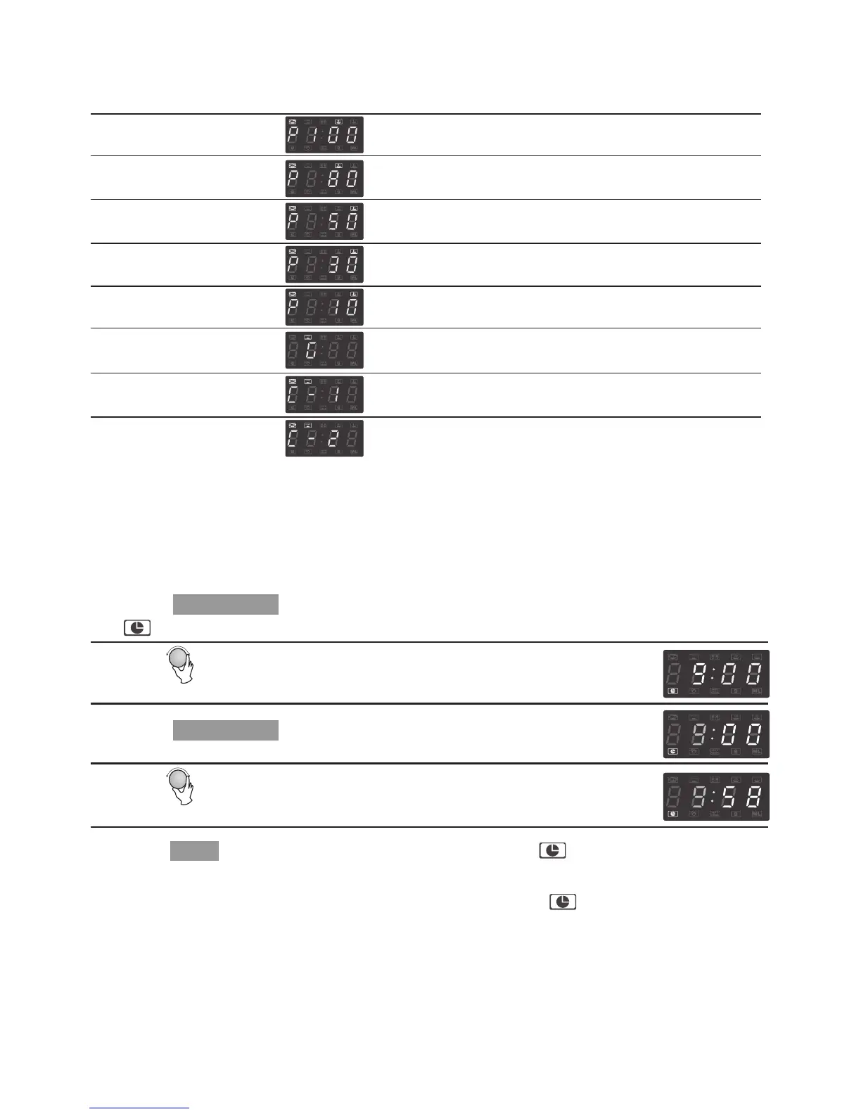 2) Input the cooking program. Three stage power levels can be set at most. Defrost
