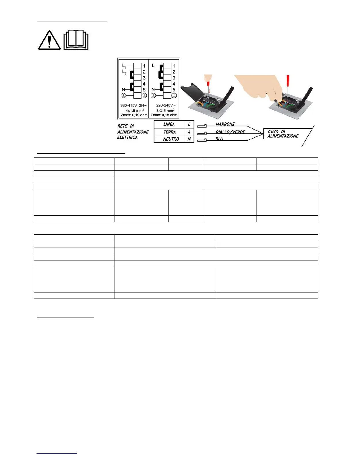 Per il collegamento si devono usare cavi armonizzati come H05V2V2-F (90°C), o con