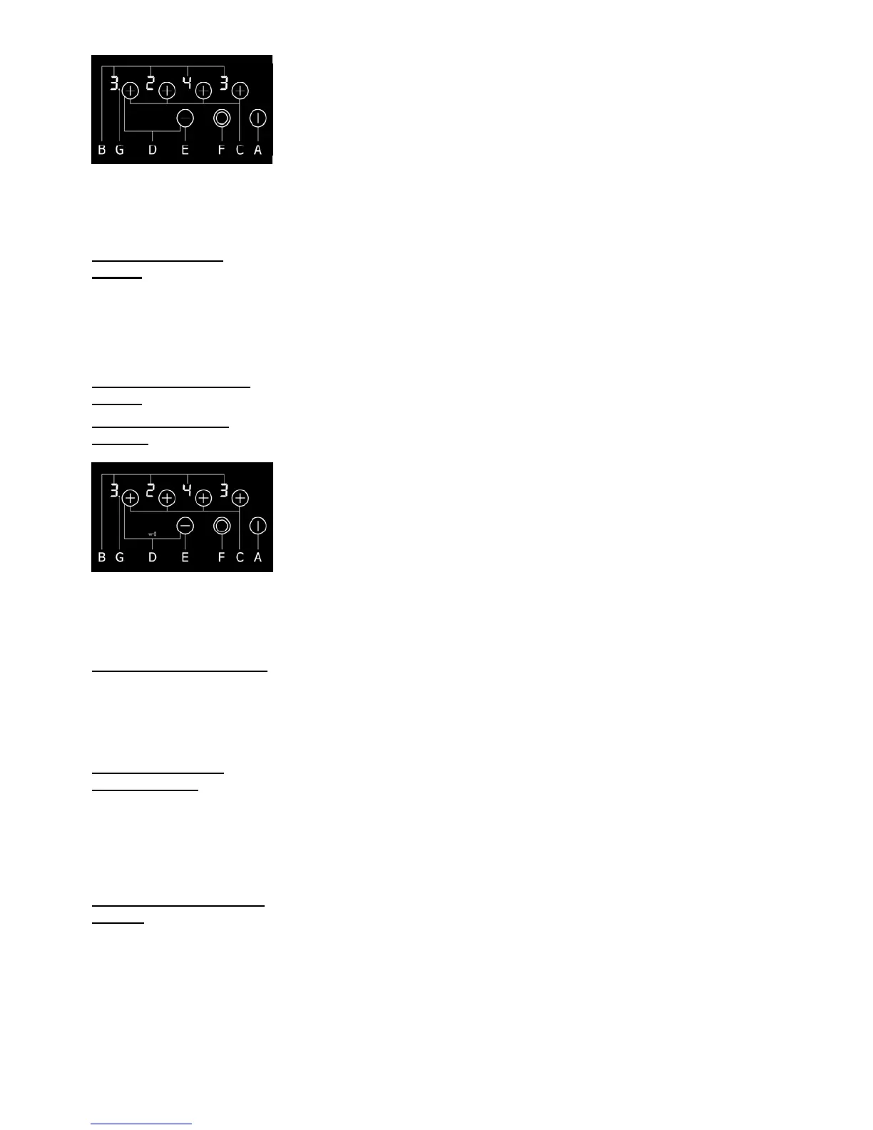 Tenendo premuto il sensore »+« (C) o »-« (E) i livelli di cottura diminuiscono