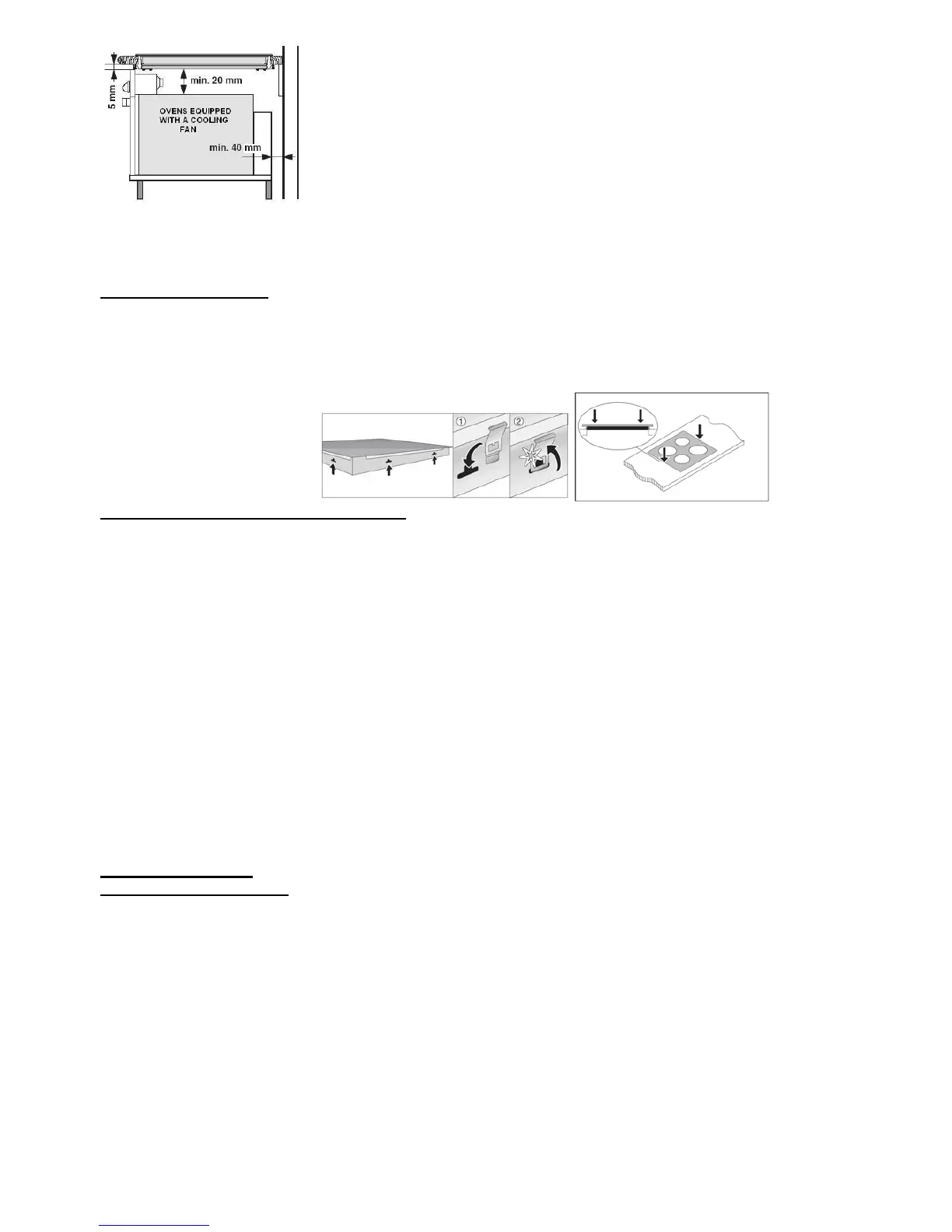 • Incorporation of the oven under the hob is permissible for ovens equipped with