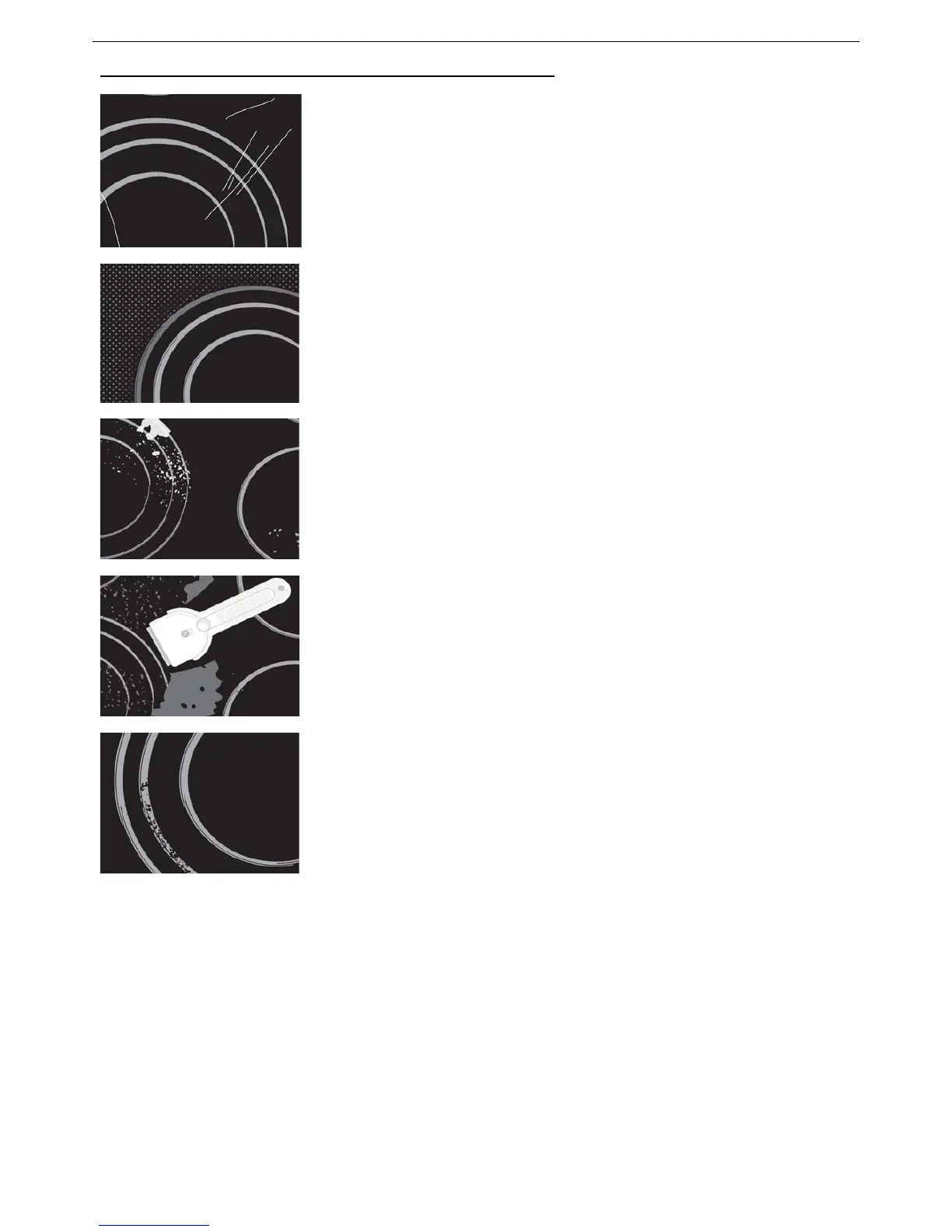 scraped off from the hob surface immediately, when the hotplates are still hot