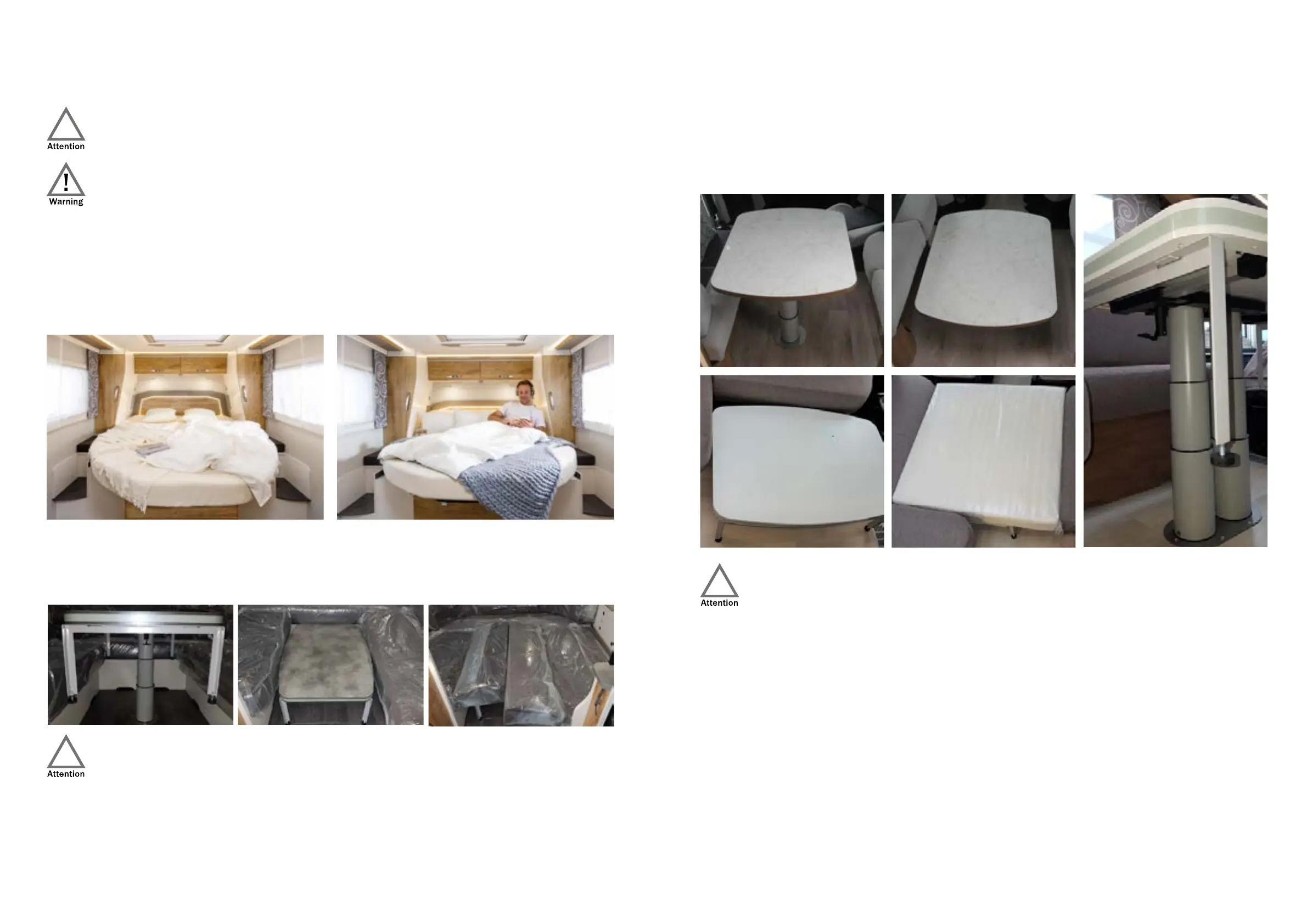 The raised drop-down bed must not be used as a luggage rack. The bedding should not remain on the