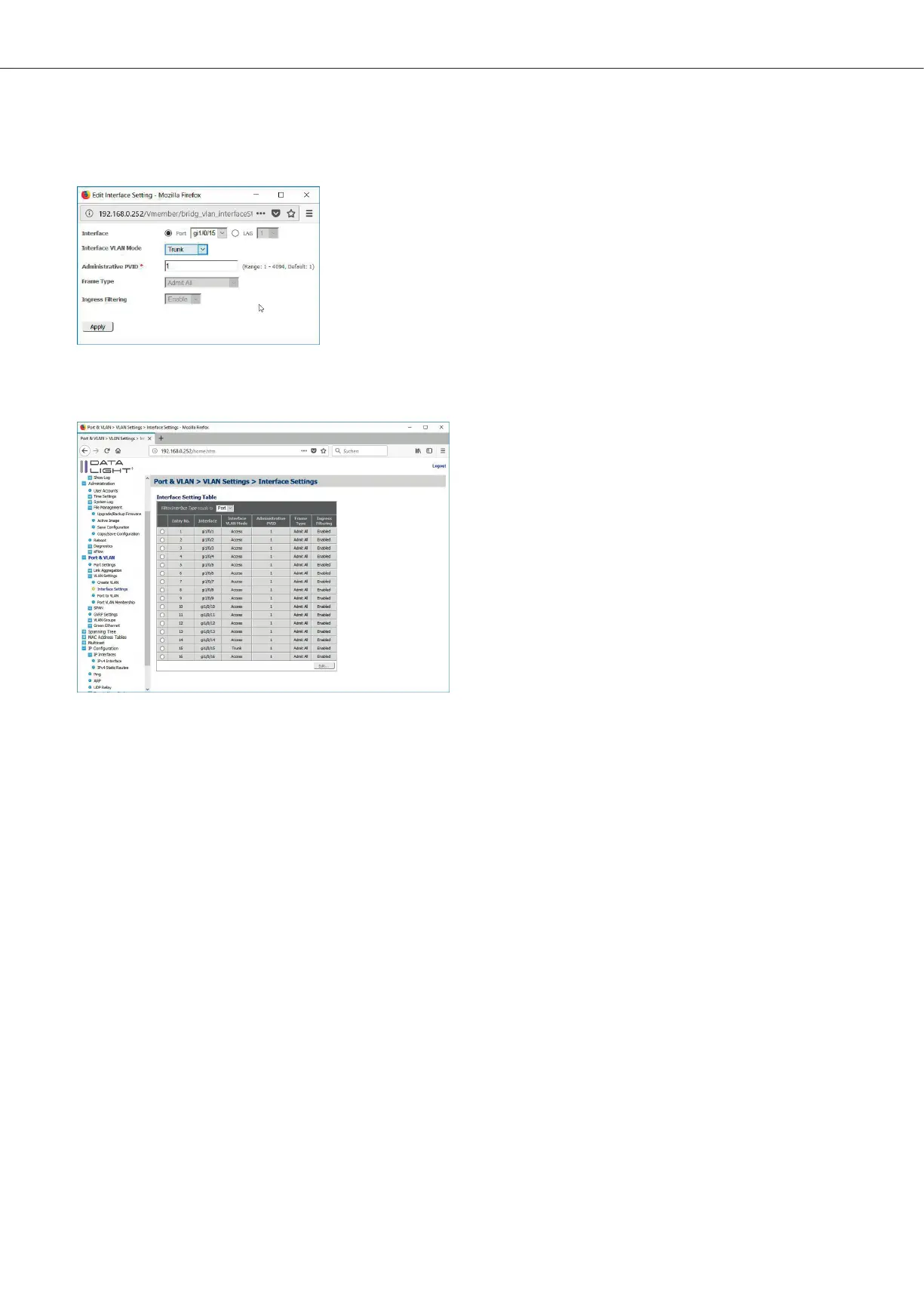 With a click on “Apply” the configuration can be seen in the interface setting table.