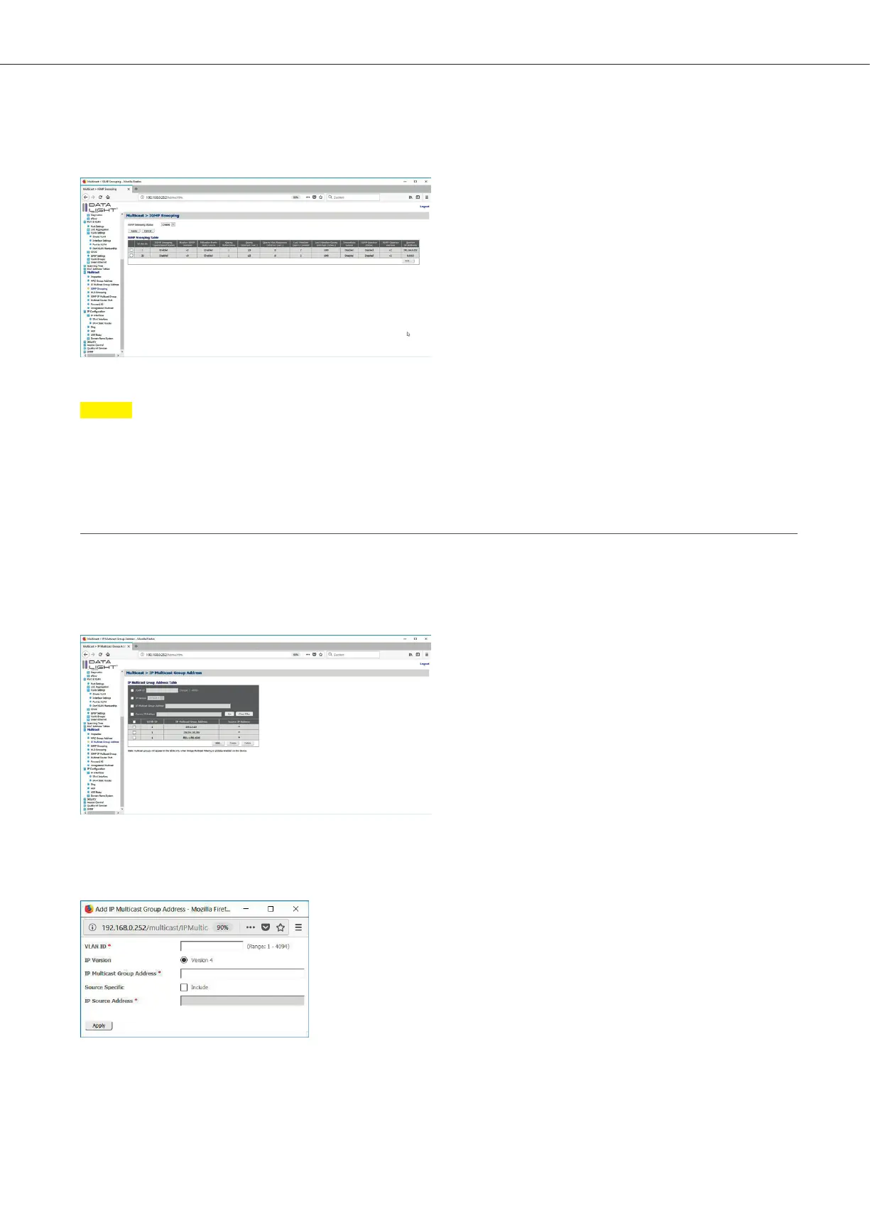 the multicast via IGMP Snooping. The registration can be done in the menu Multicast > IP Multicast Group Addresses.