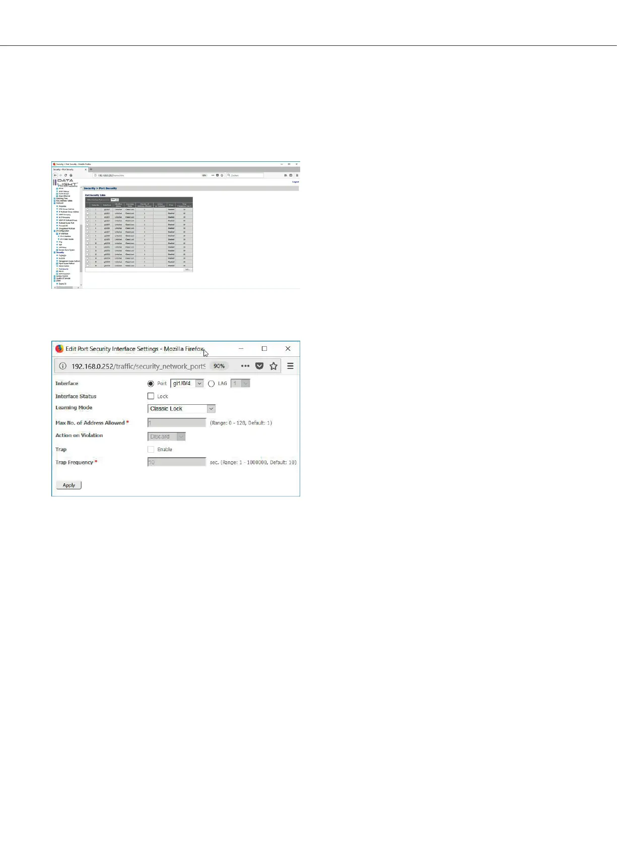 Dynamic Lock” the device learns MAC addresses up to the limit. If the limit is reached, no more devices can be learned.