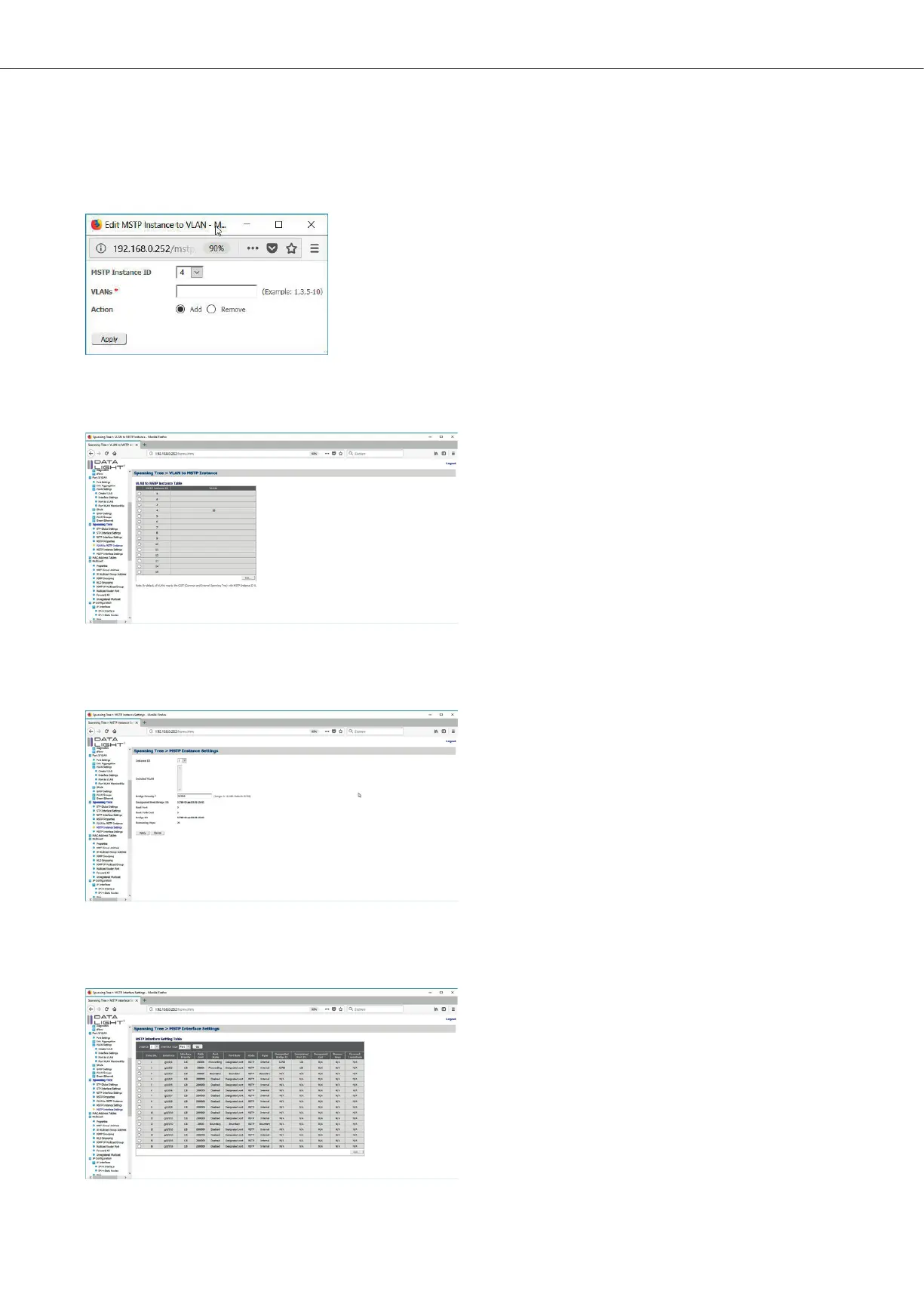 With a click on “Apply” the configuration can be seen in the VLAN to MSTP Instance table.