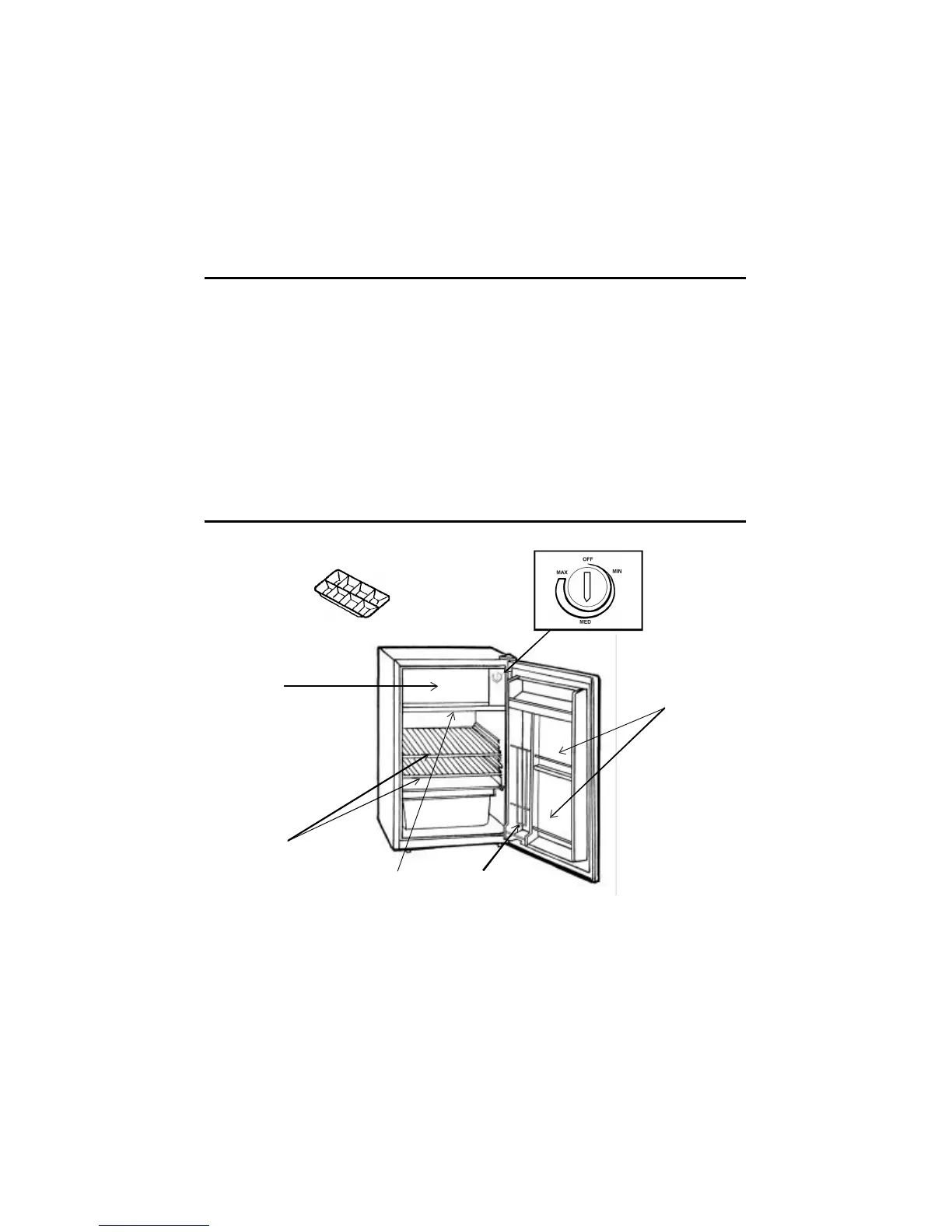 C. Shelves F. Thermostat