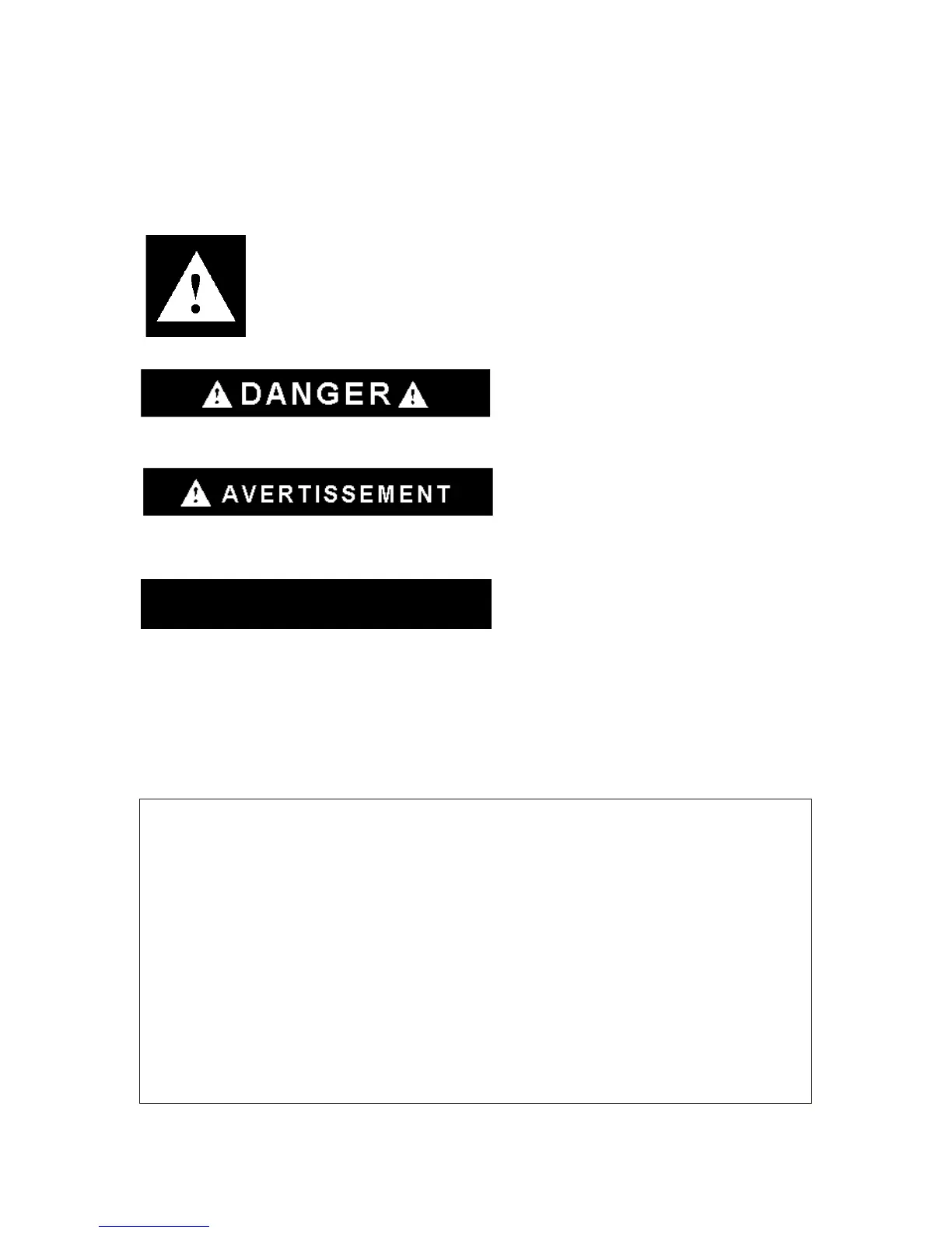 DANGER, AVERTISSEMENT ou ATTENTION.