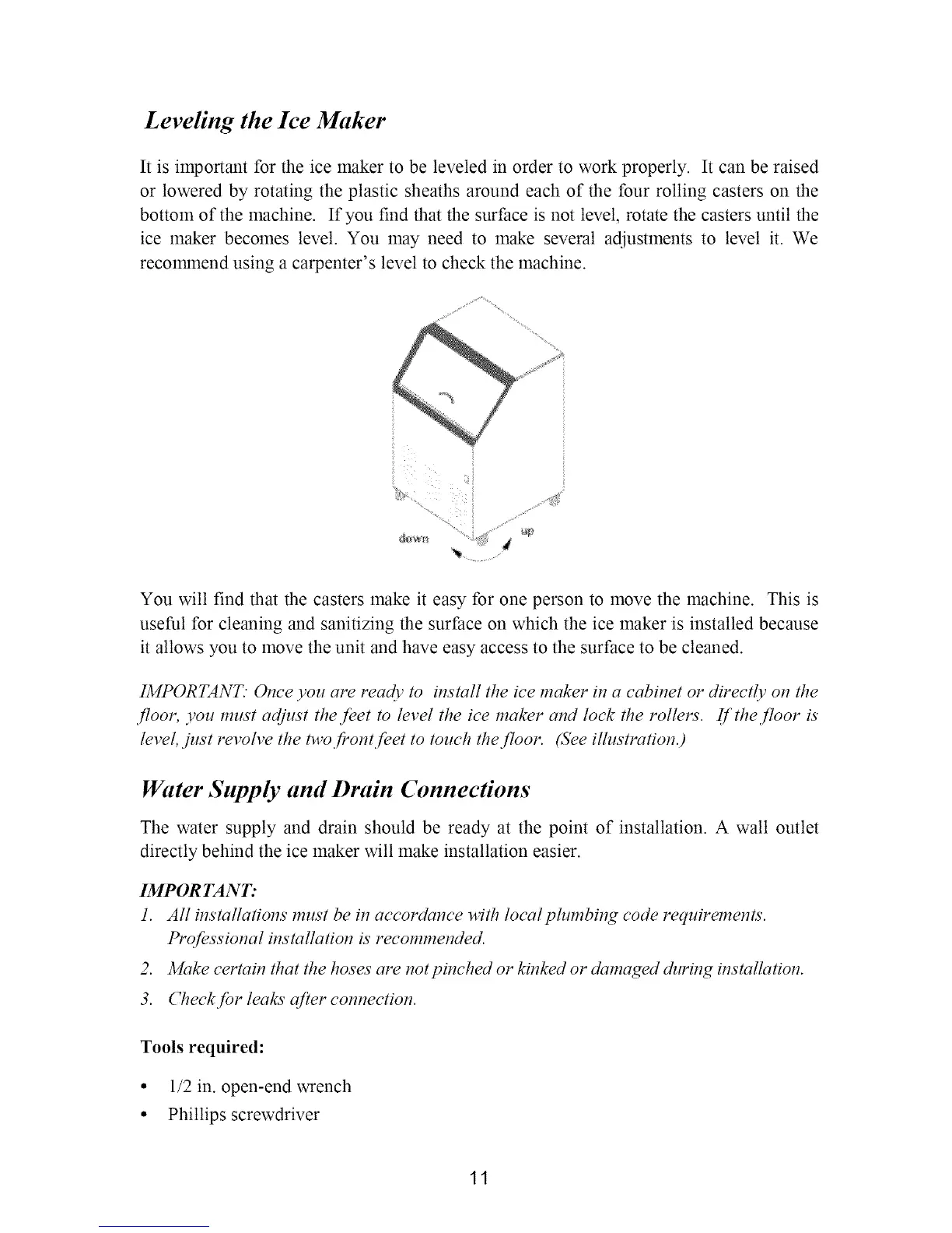floor, you must adjust the feet to level the ice maker and lock the rollers'. If thej7oor is'
