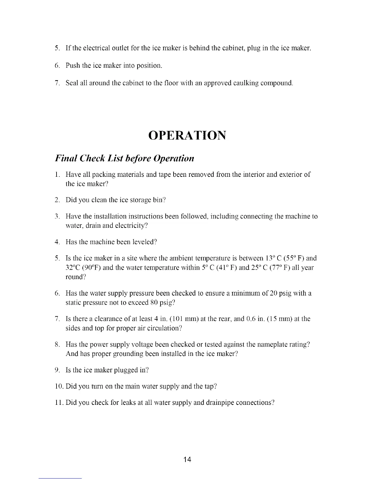 5. Is the ice maker in a site where the ambient temperature is between 13° C (55 ° F) and