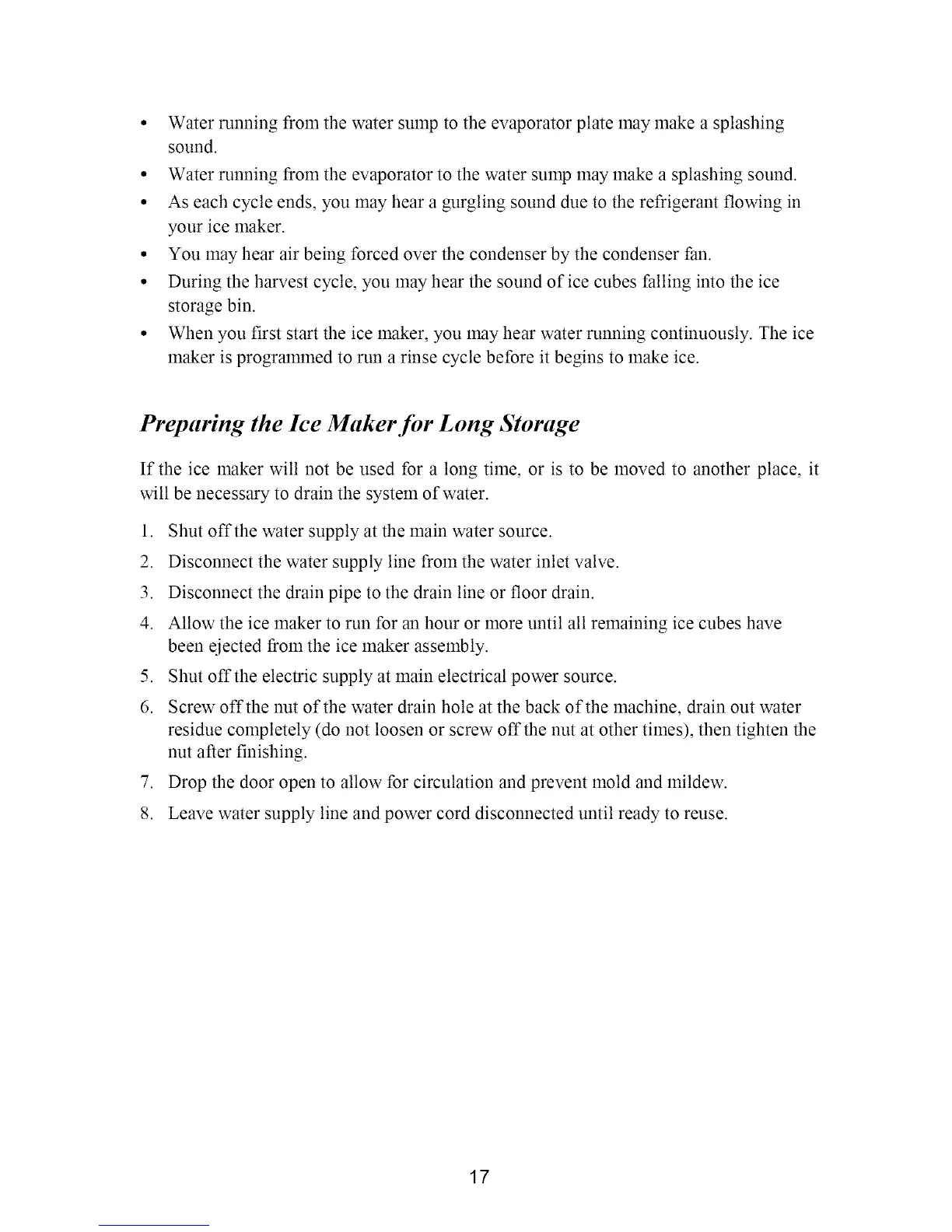 • Water running from the evaporator to the water sump may make a splashing sound.
