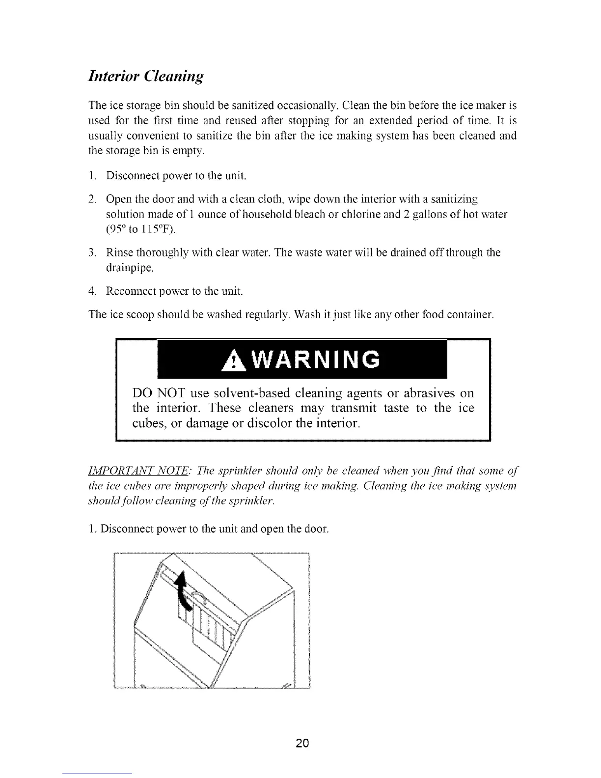 The ice storage bin should be sanitized occasionally. Clean the bin before the ice maker is