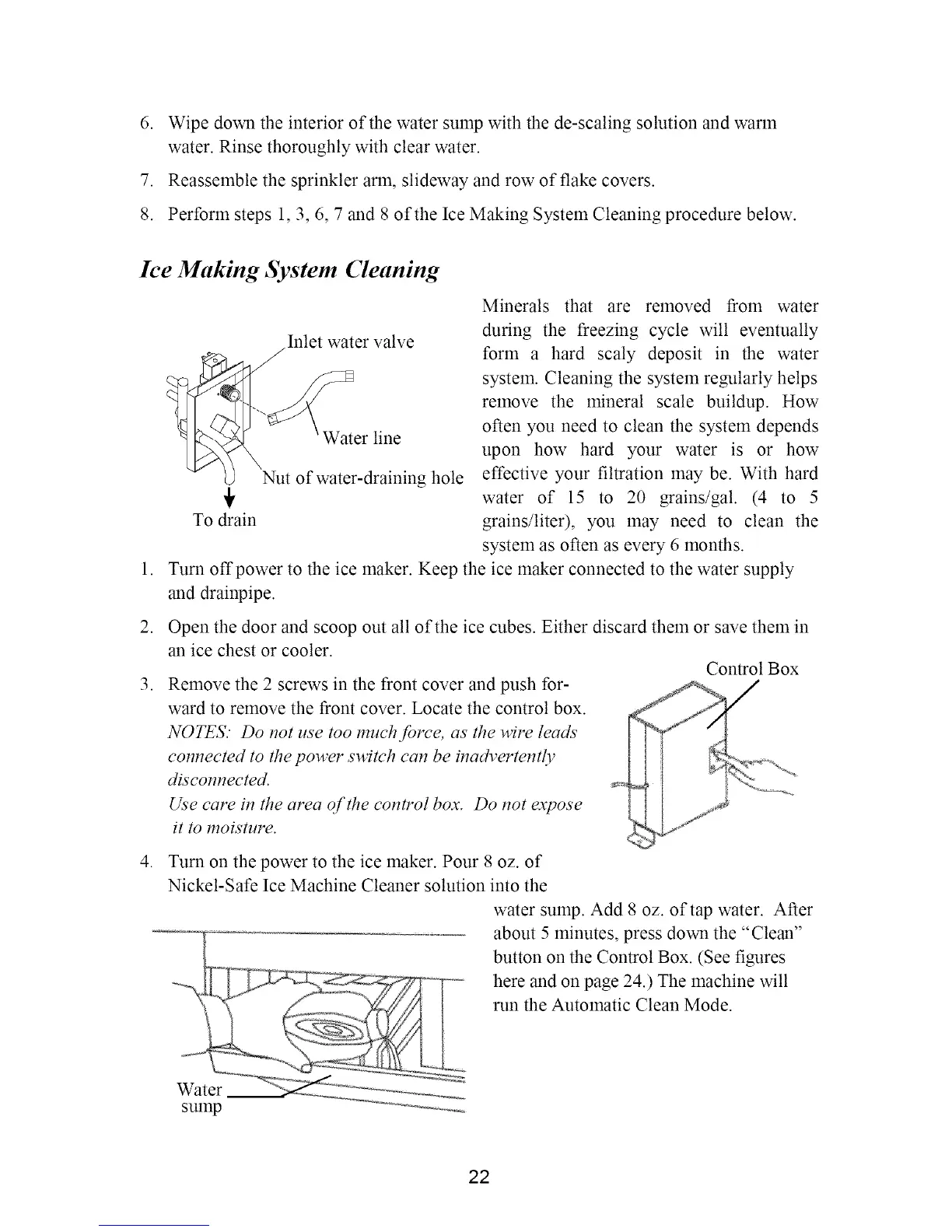 8. Performsteps1,3,6,7 and8of theIceMaking SystemCleaningprocedurebelow.