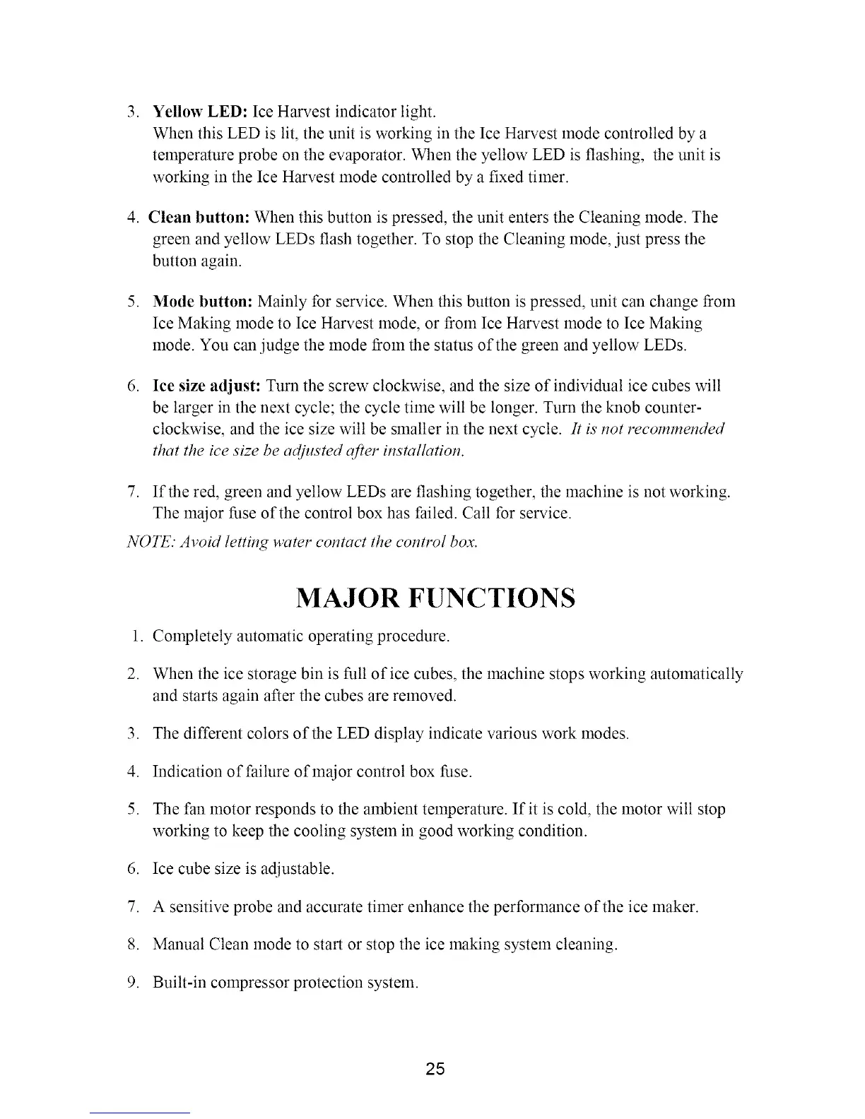 8. Manual Clean mode to start or stop the ice making system cleaning.