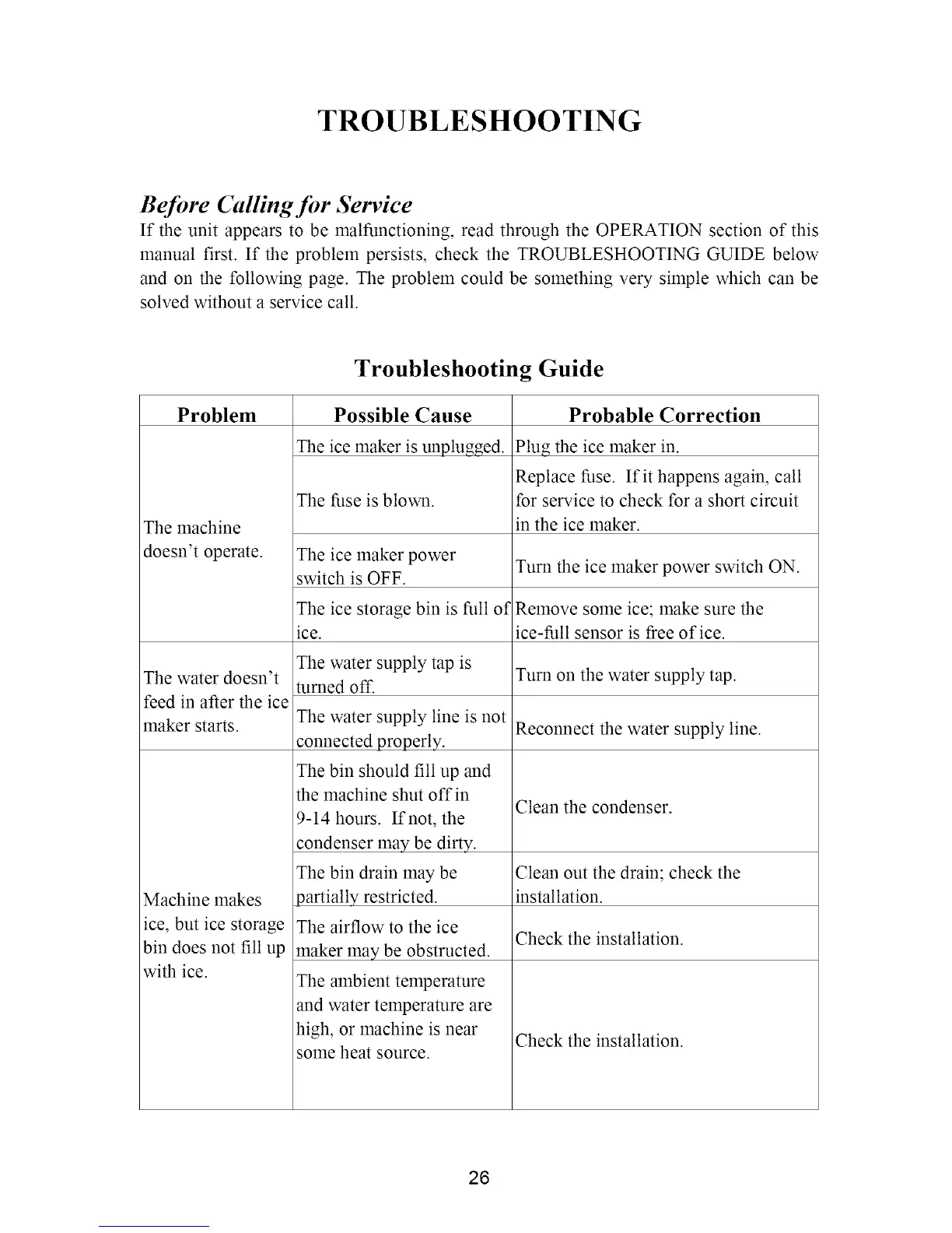 manual first. If the problem persists, check the TROUBLESHOOTING GUIDE below