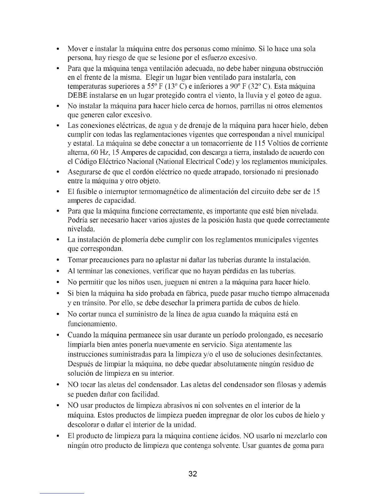 • Lasconexioneseldctricas,deaguay dedrenajedela mfiquinaparahacerhielo, deben