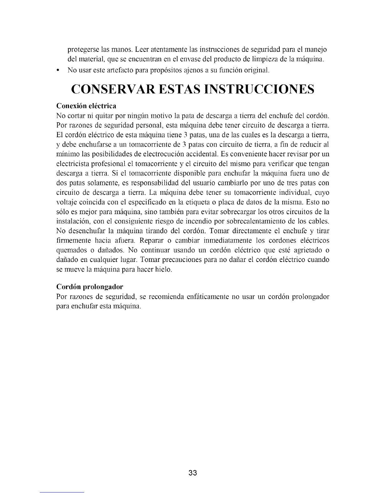 No cortar ni quitar por ningfln motivo la pata de descarga a tierra del enchufe del corddn.