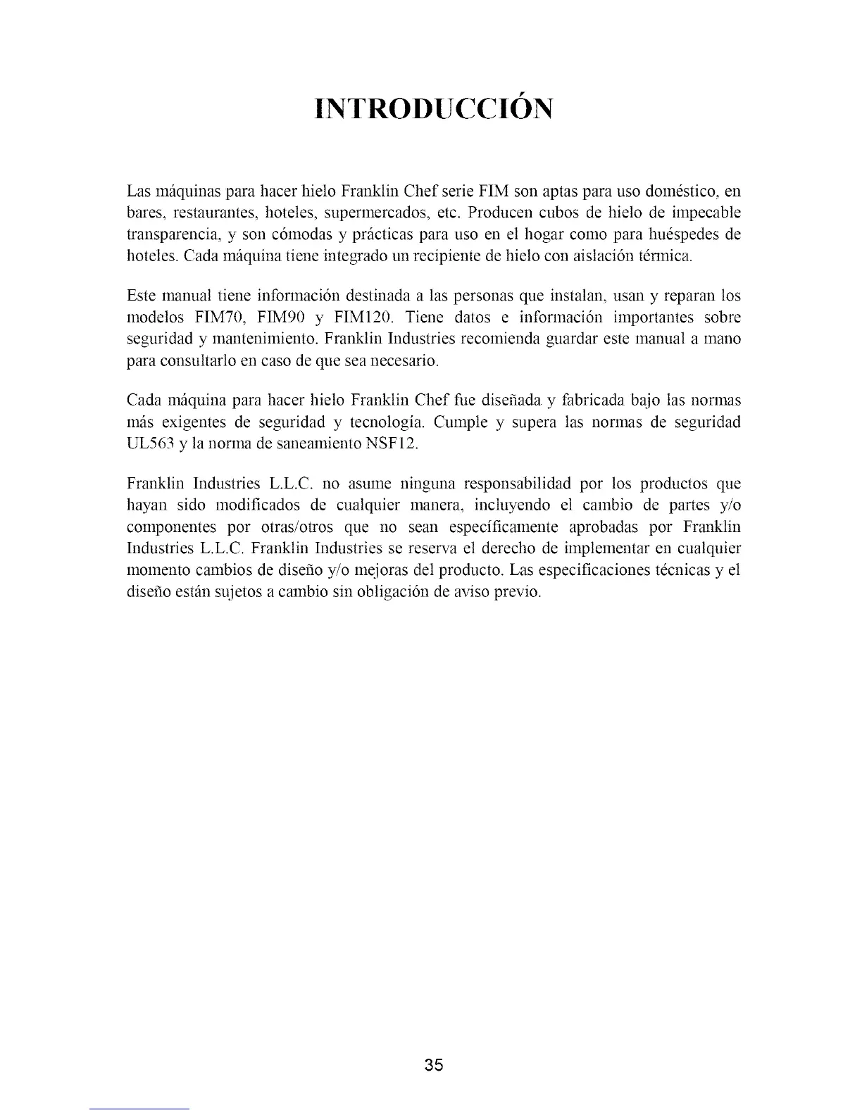 Cada mfiquina para hacer hielo Franklin Chef fue disefiada y _abricada bajo las normas