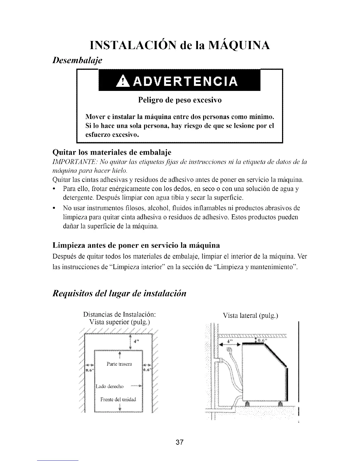 Mover e instalar la m_iquina entre dos personas como minimo.