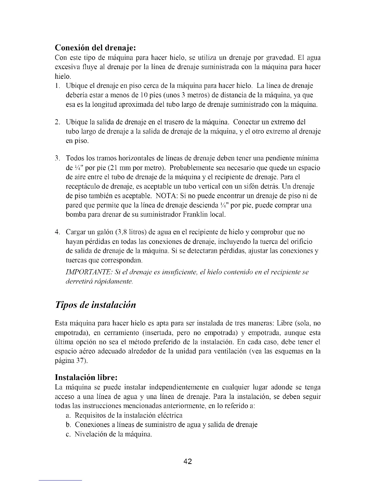 Conestetipo de mfiquinaparahacerhielo, seutiliza un drenajepor gravedad.E1agua