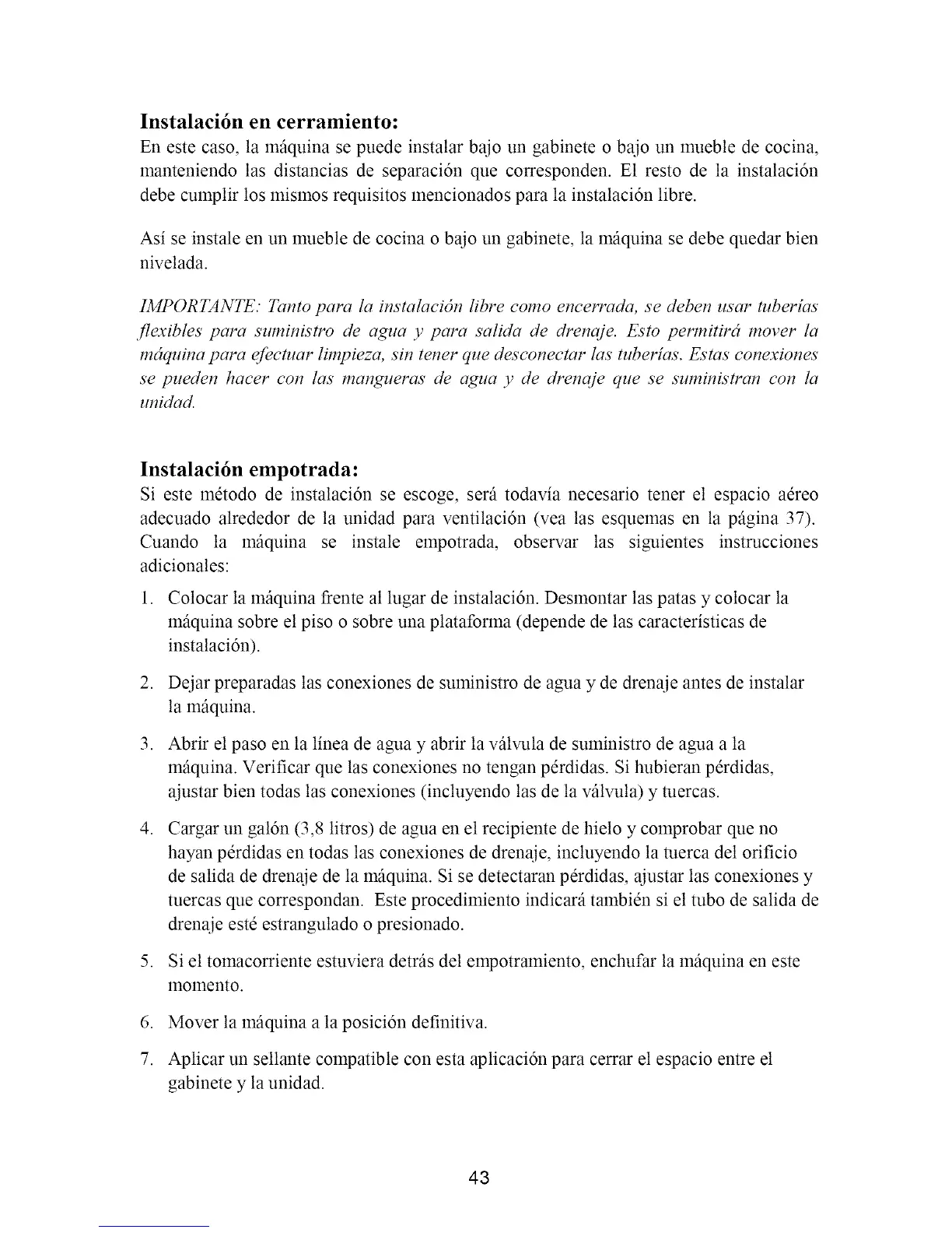 Cuando la mfiquina se instale empotrada, observar las siguientes instrucciones