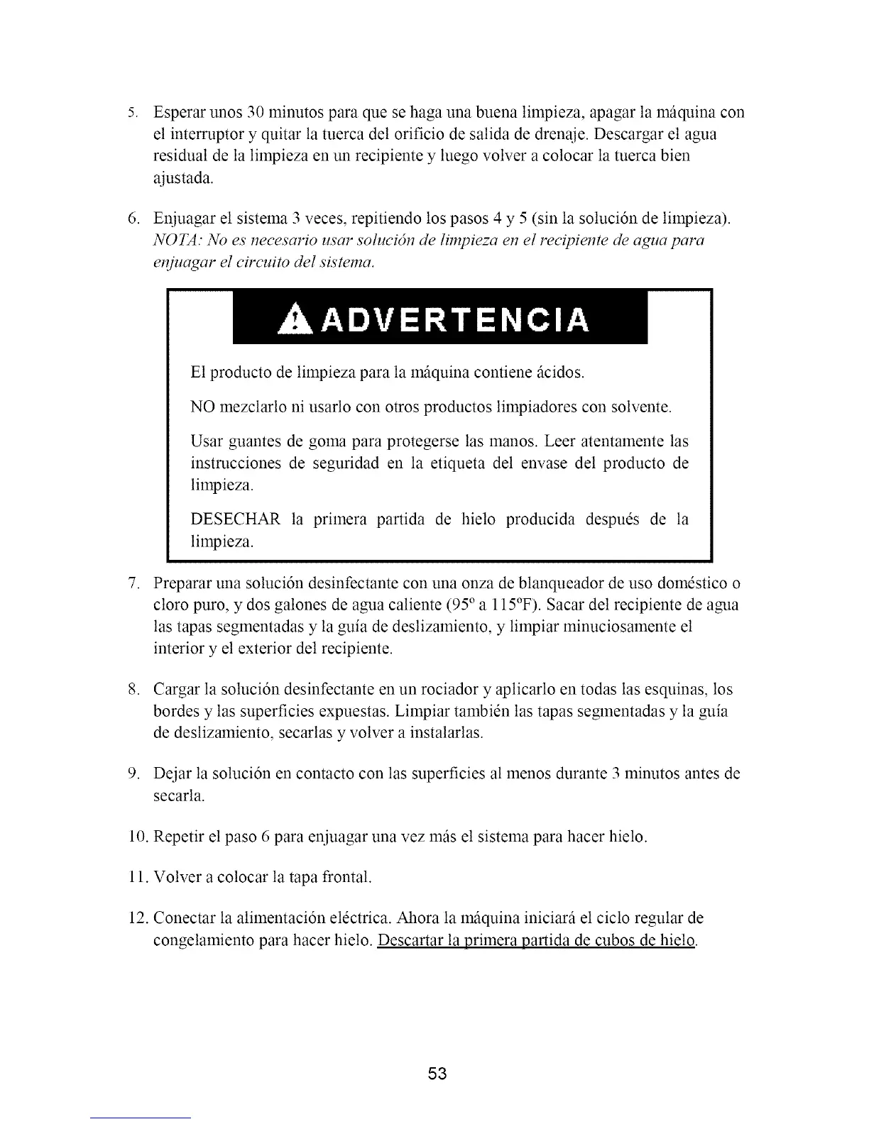 NOTA." No as necesario usar soluci6n de limpieza an el recipiente de agua para