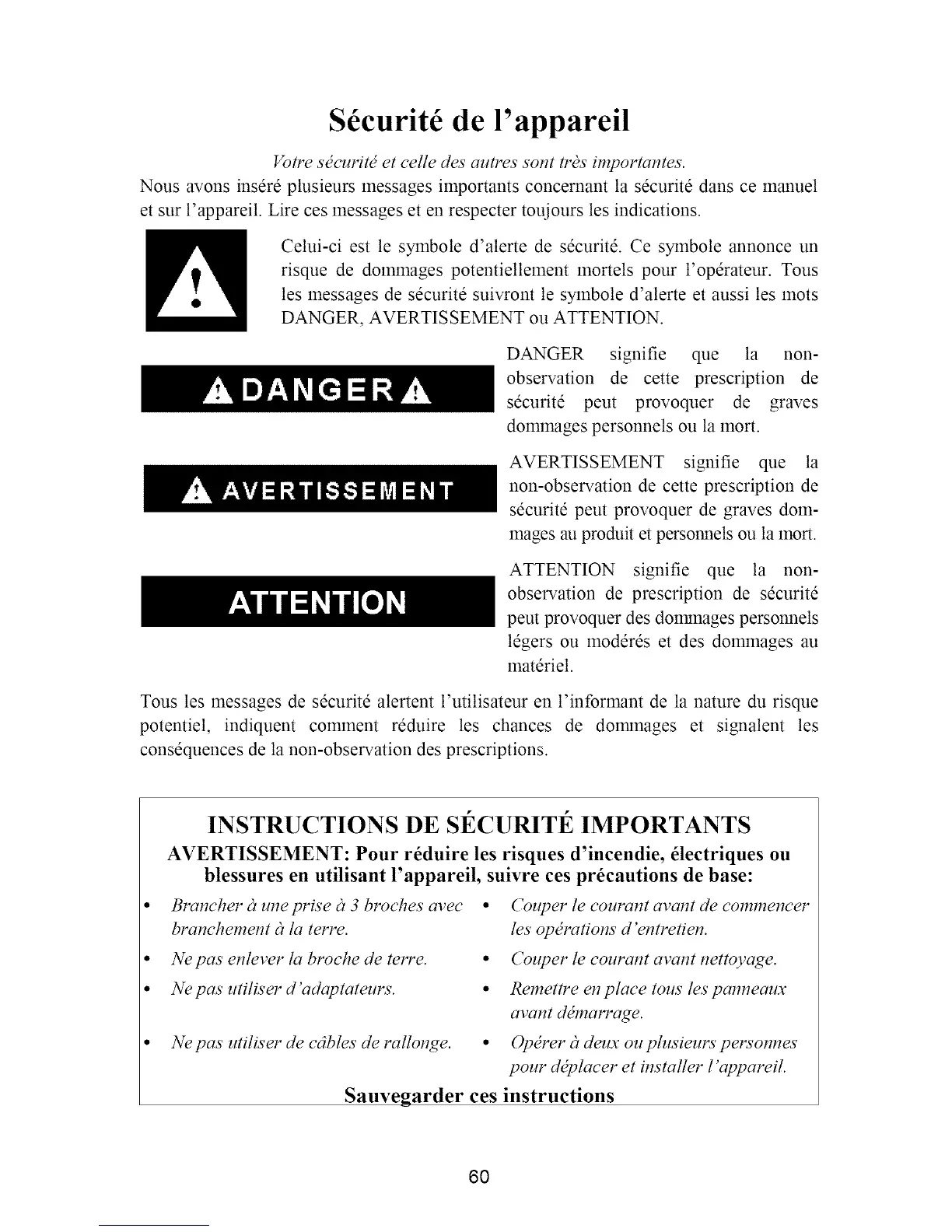 Sauvegarder ces instructions