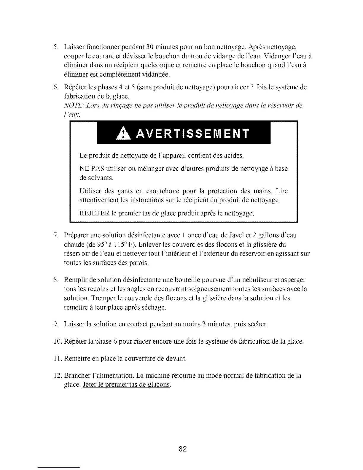 REJETER le premier tas de glace produit aprbs le nettoyage.