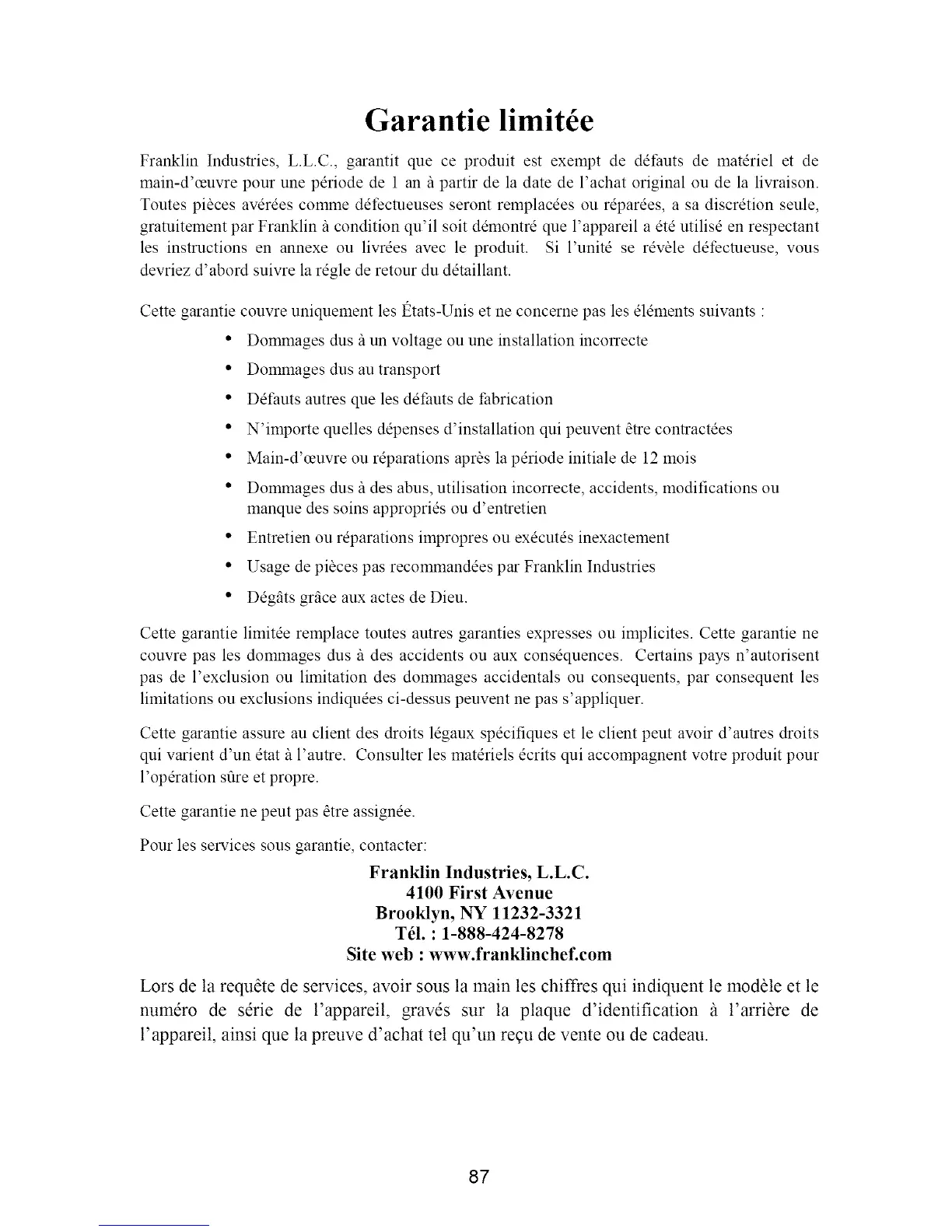gratuitement par Franklin/_ condition qu'il soit demontre que l'appareil a ete utilise en respectant