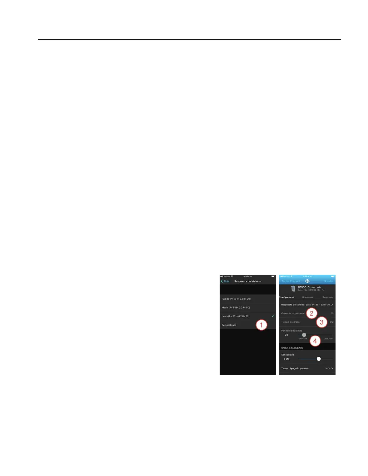 Ganancia proporcional: Esta configuración determina la sensibilidad de entrada del