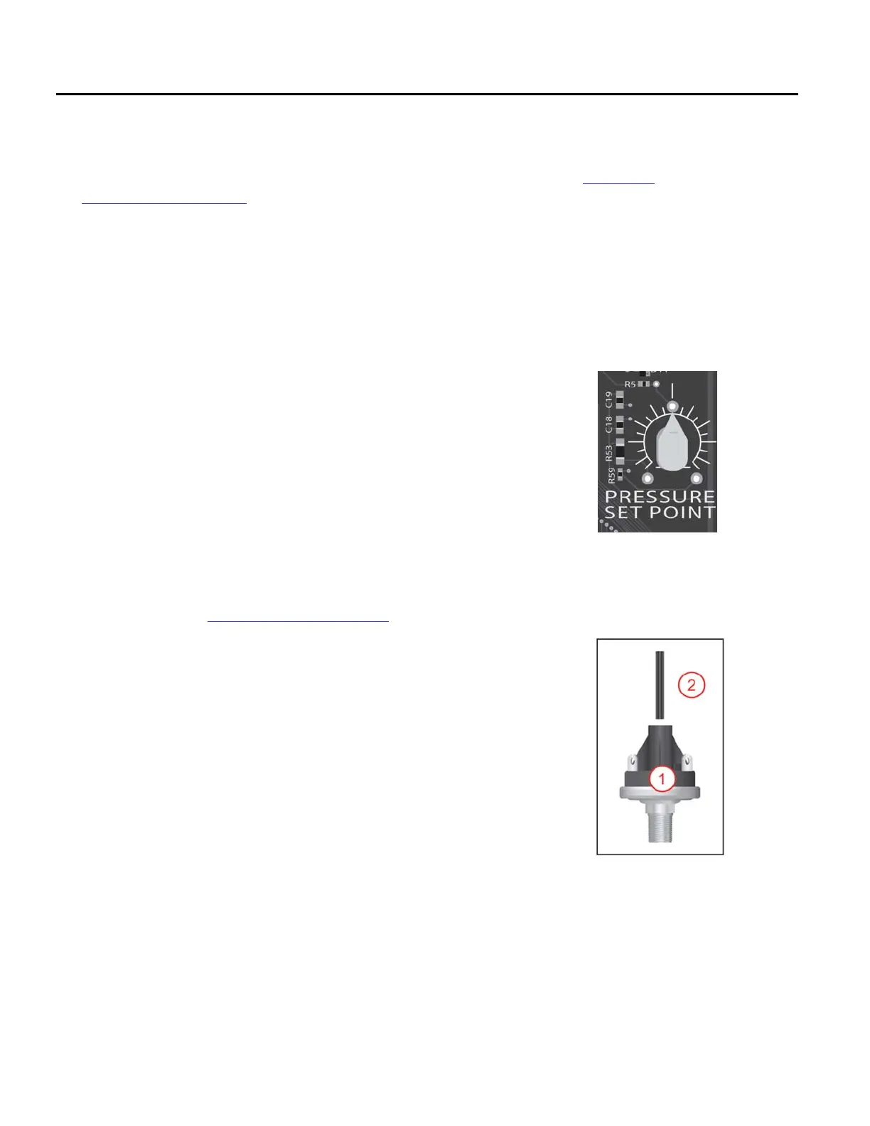 Pressure Sensor: The sensor (1) is preset at the factory to 50 psi (3.4 bar), but can be