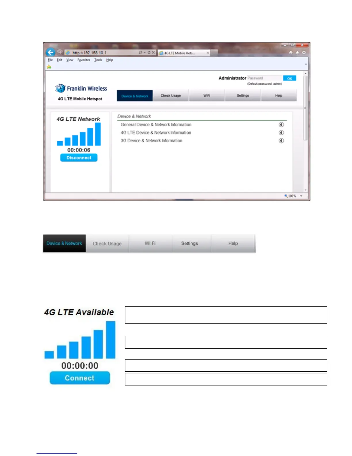 displayed down the left side of the main page. This box displays both 3G and 4G LTE service signals