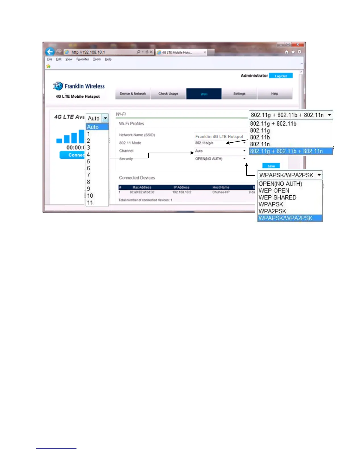 3. Select the Wi-Fi channel number you want to use. The default setting is “Auto”.