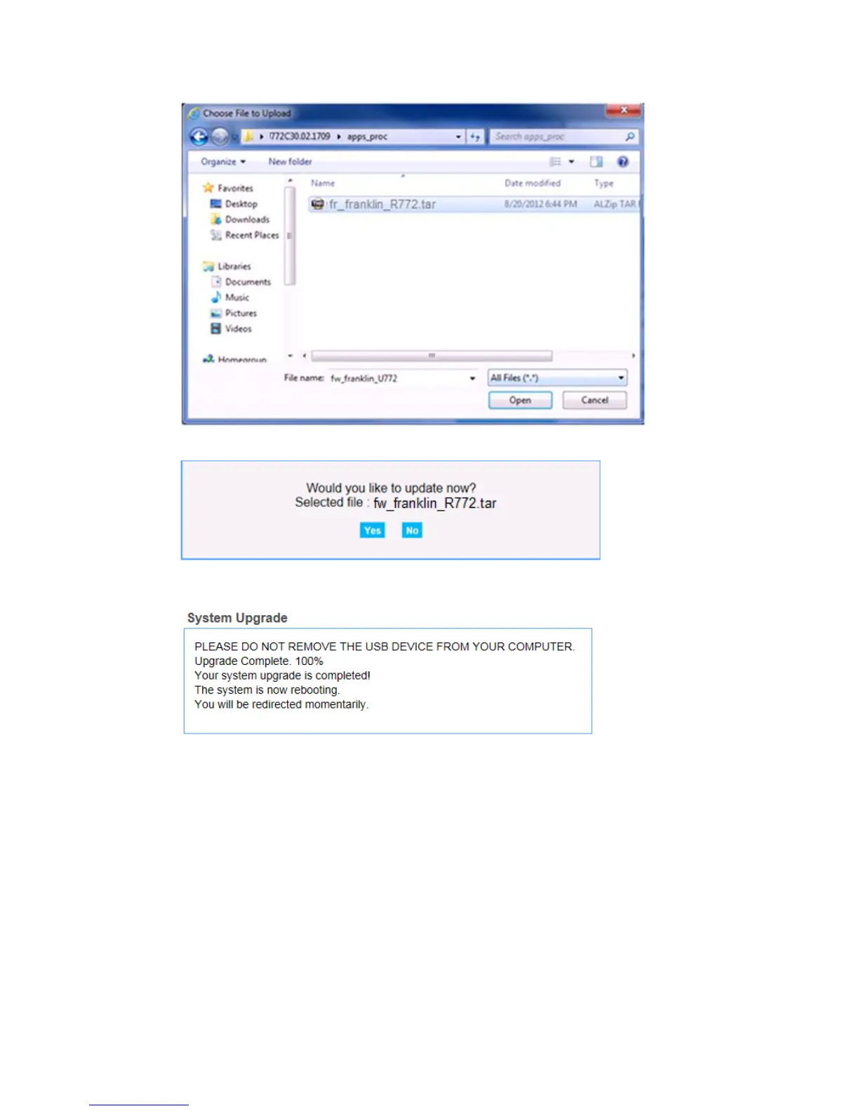 3. You will see the dialog showing the software update progress.