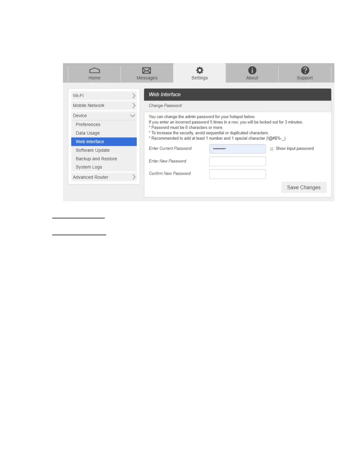 1. From the Web UI, click Settings > Device > Web Interface.