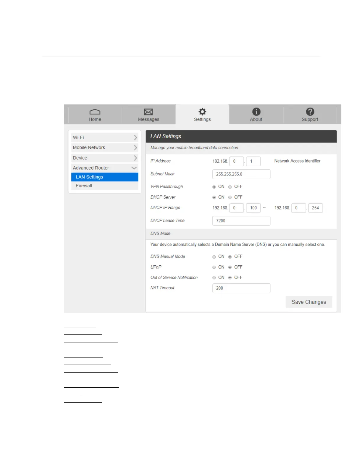 1. From the Web UI, click Settings > Advanced Router > LAN Settings to display the router