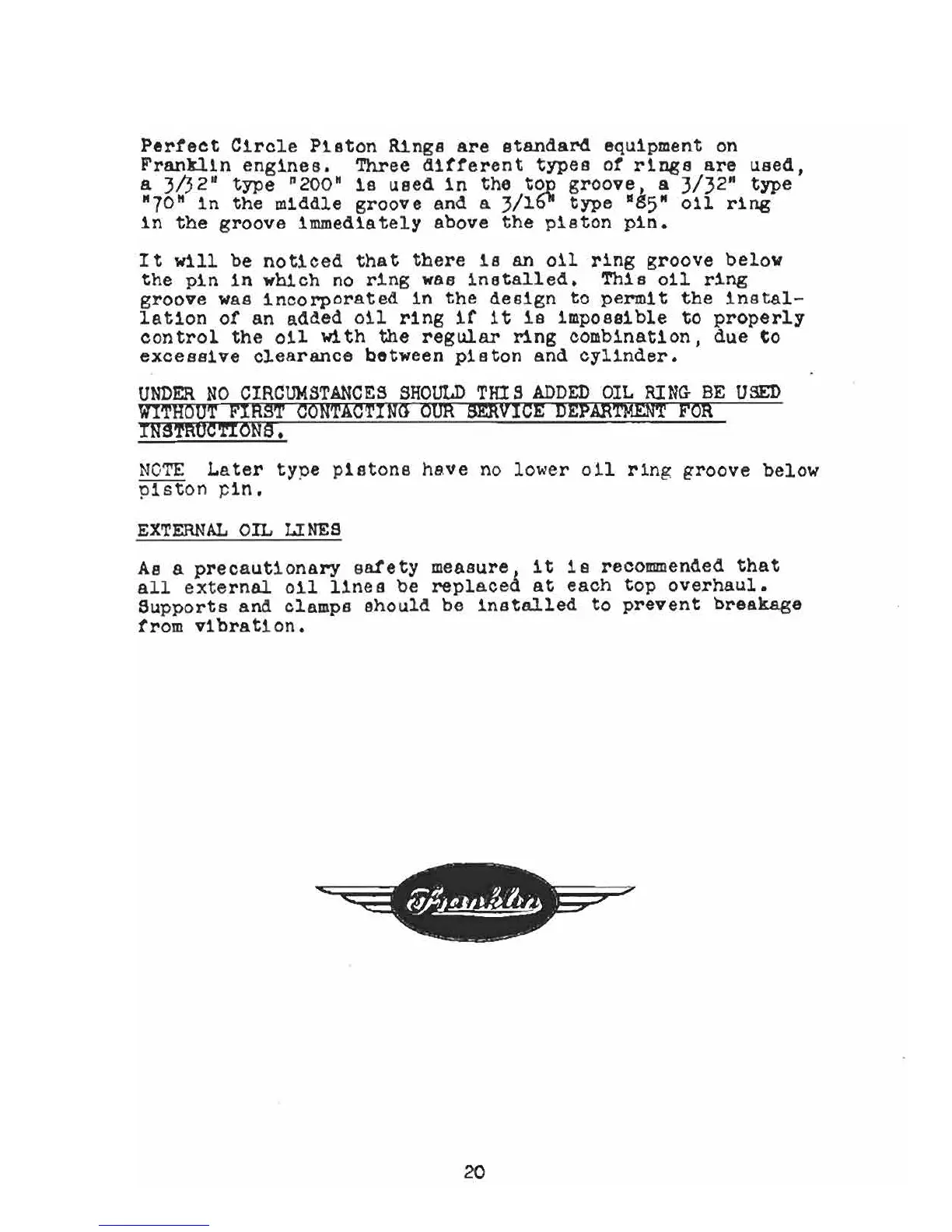 Franklin 4AC-199 - Part VII: Table of Fits and Clearances; Component Fit Tolerances