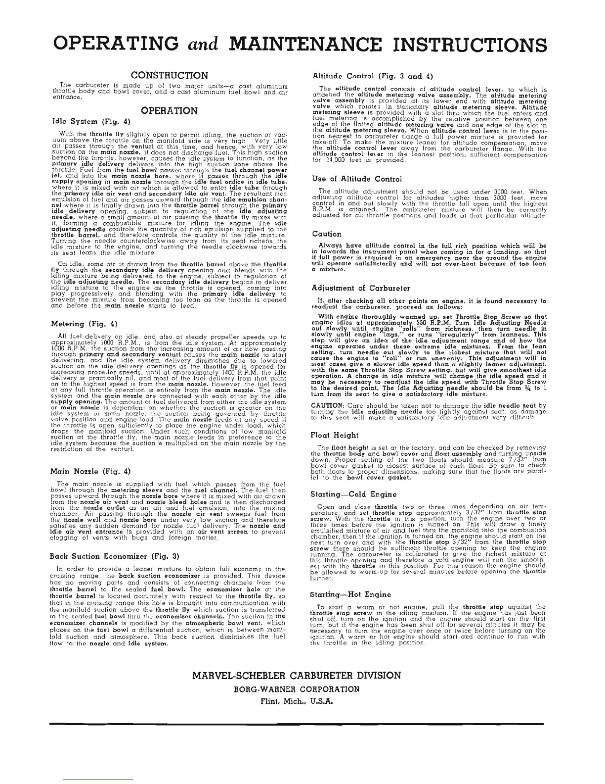 Franklin 4AC-199 - Carbureter Operation and Adjustment